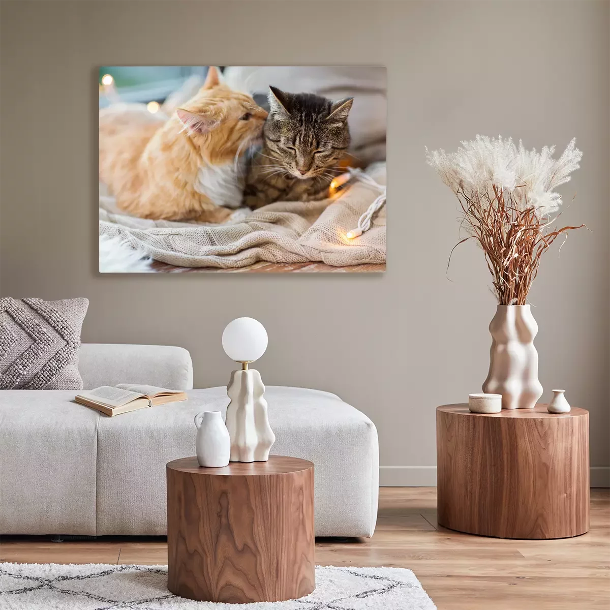 De print wordt aangebracht op hoogwaardig canvas dat op een schildersweefgetouw (spieraam) wordt gespannen. Omdat de print de zijranden bedekt, hoeft het ontwerp niet met een extra kader te worden omlijst. Wij raden ook composities aan die uit meerdere foto's bestaan en zo een coherente compositie vormen.