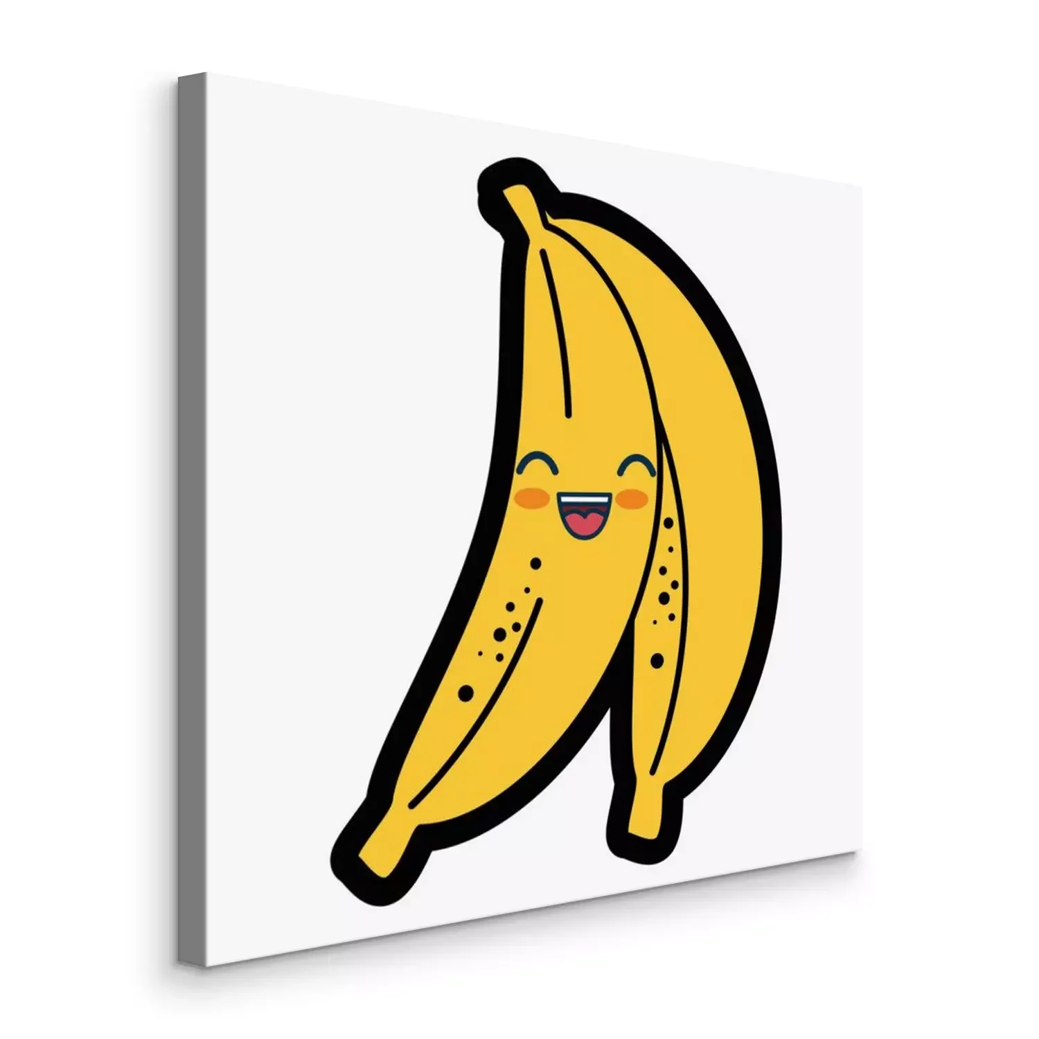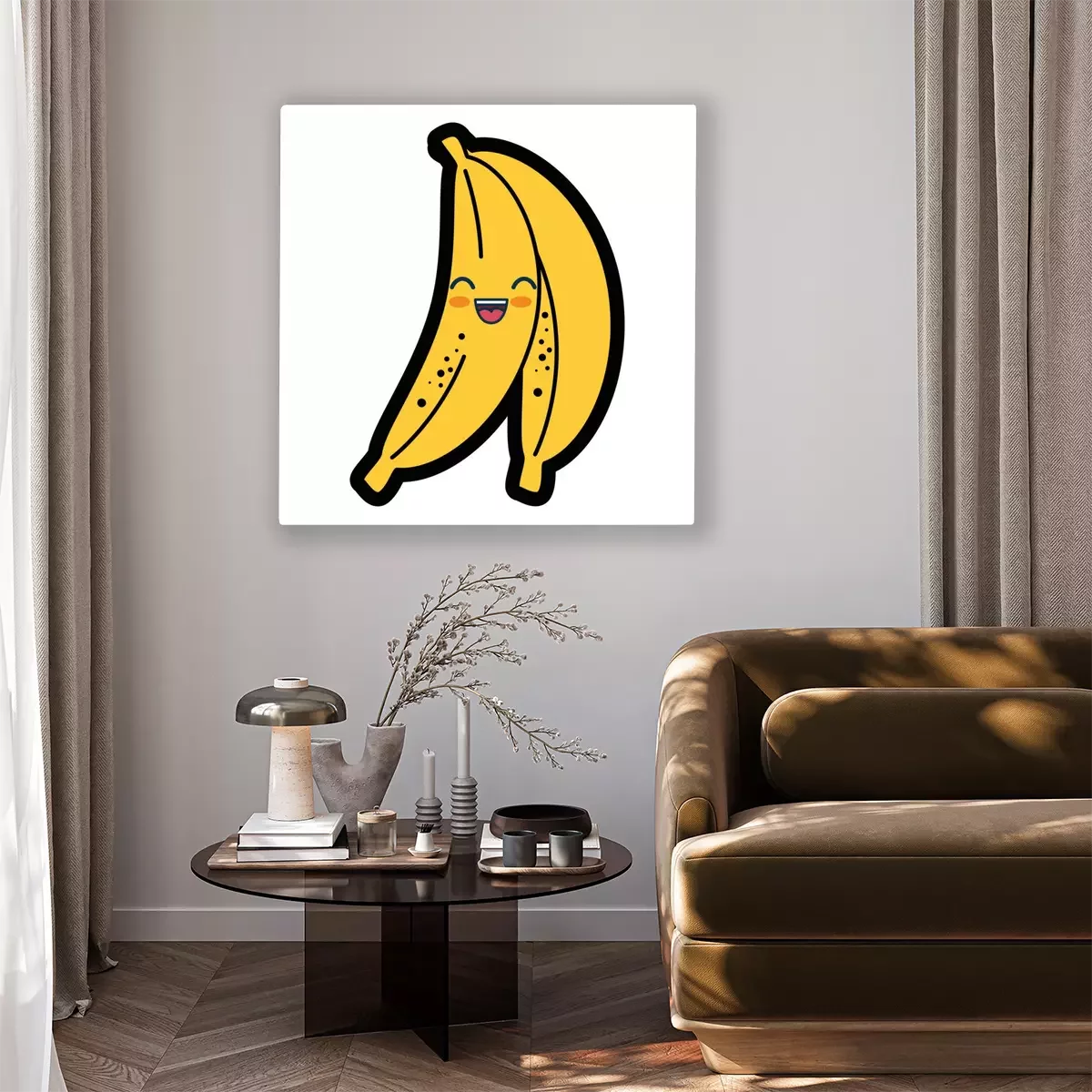 Canvas: Kawaii bananen fruit icoon op witte achtergrond. Kleurrijk ontwerp. Vector illustratie