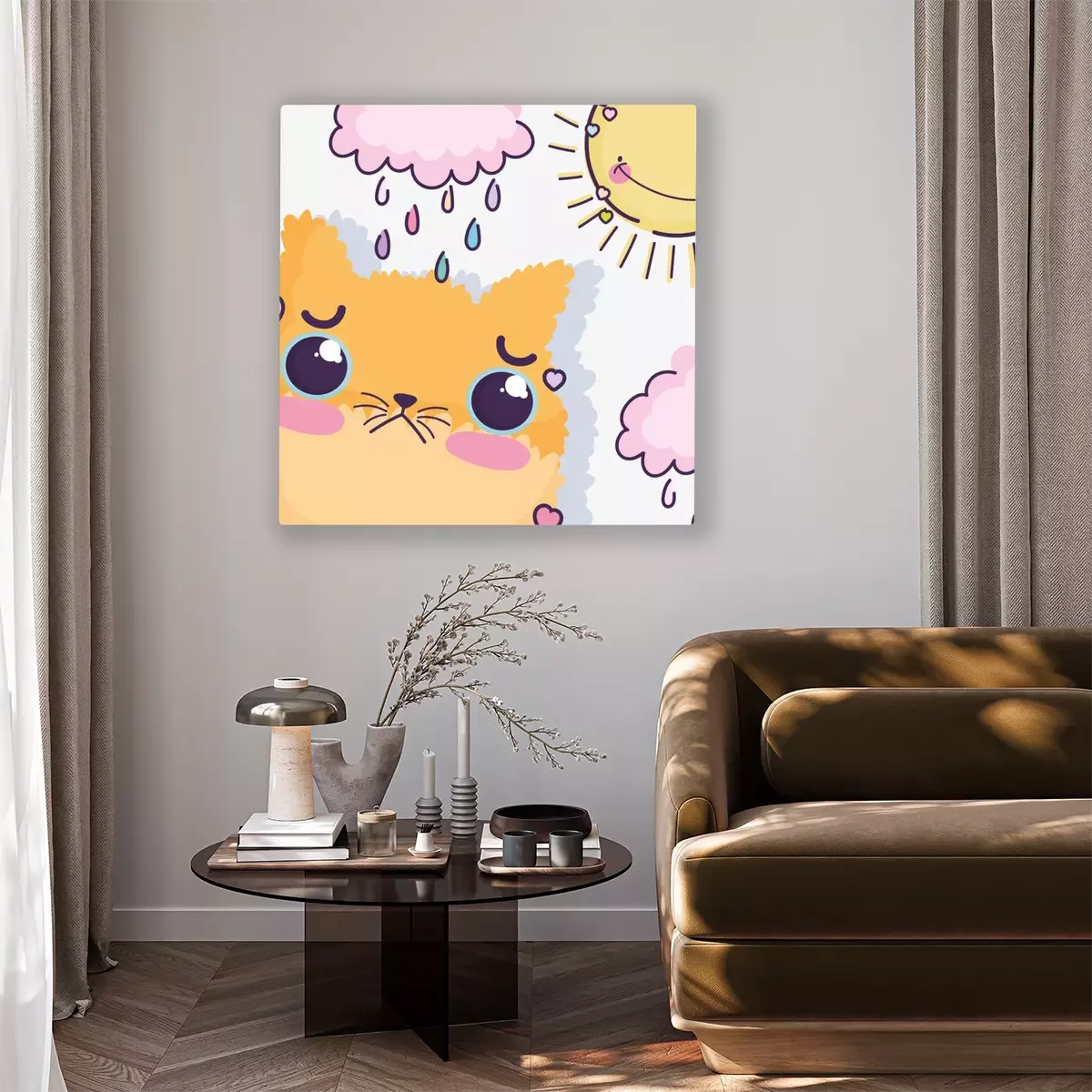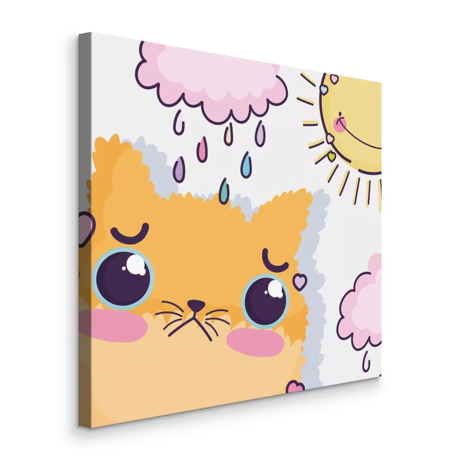 Canvas kawaii cartoon cute cat in the rainy day
