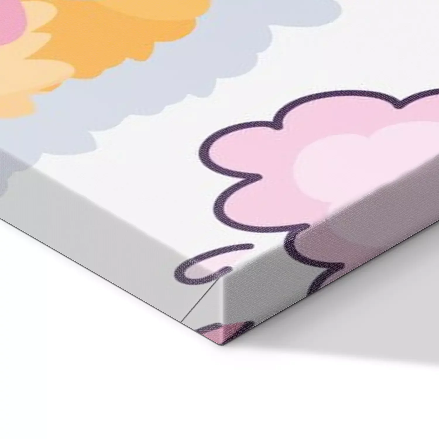 De print wordt aangebracht op hoogwaardig canvas dat op een schildersweefgetouw (spieraam) wordt gespannen. Omdat de print de zijranden bedekt, hoeft het ontwerp niet met een extra kader te worden omlijst. Wij raden ook composities aan die uit meerdere foto's bestaan en zo een coherente compositie vormen.