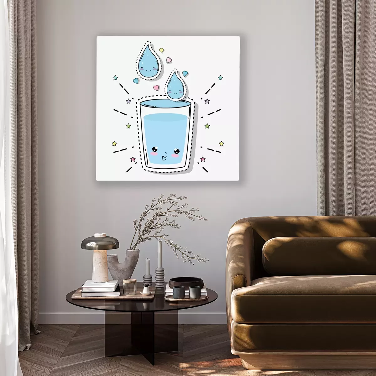 Canvas: Kawaii zacht waterglas met hartjes en sterren