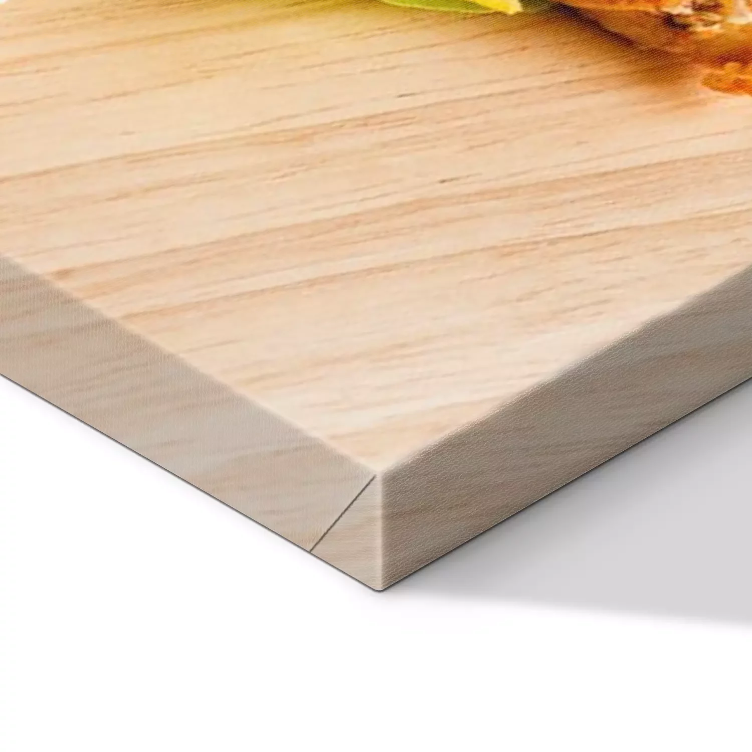 De print wordt aangebracht op hoogwaardig canvas dat op een schildersweefgetouw (spieraam) wordt gespannen. Omdat de print de zijranden bedekt, hoeft het ontwerp niet met een extra kader te worden omlijst. Wij raden ook composities aan die uit meerdere foto's bestaan en zo een coherente compositie vormen.