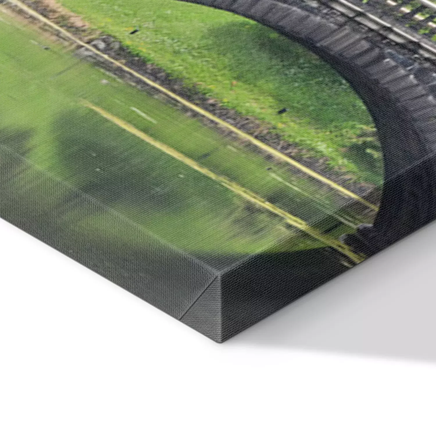 De print wordt aangebracht op hoogwaardig canvas dat op een schildersweefgetouw (spieraam) wordt gespannen. Omdat de print de zijranden bedekt, hoeft het ontwerp niet met een extra kader te worden omlijst. Wij raden ook composities aan die uit meerdere foto's bestaan en zo een coherente compositie vormen.