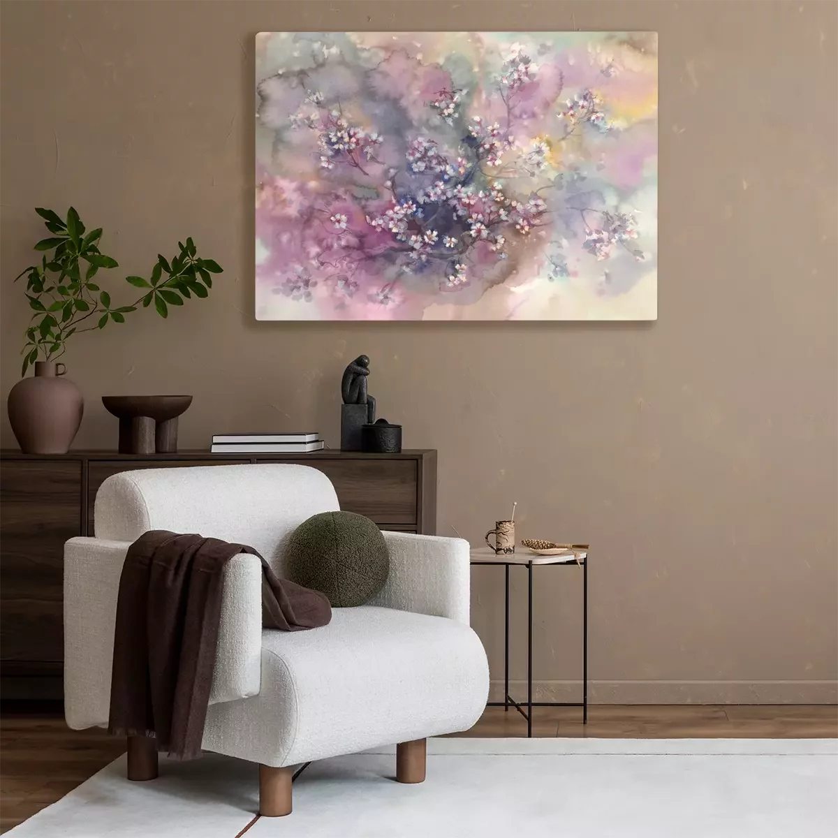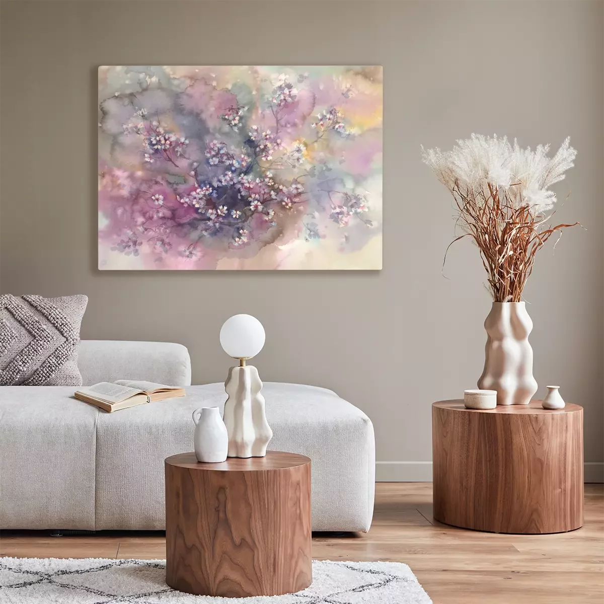 Canvas: Kersenbloesems op een aquarelachtergrond