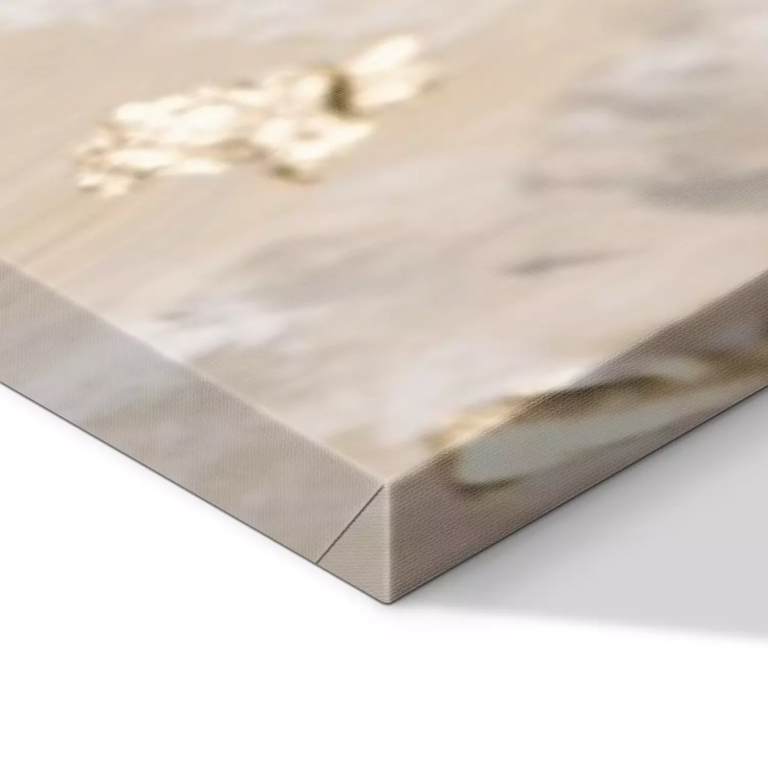 De print wordt aangebracht op hoogwaardig canvas dat op een schildersweefgetouw (spieraam) wordt gespannen. Omdat de print de zijranden bedekt, hoeft het ontwerp niet met een extra kader te worden omlijst. Wij raden ook composities aan die uit meerdere foto's bestaan en zo een coherente compositie vormen.