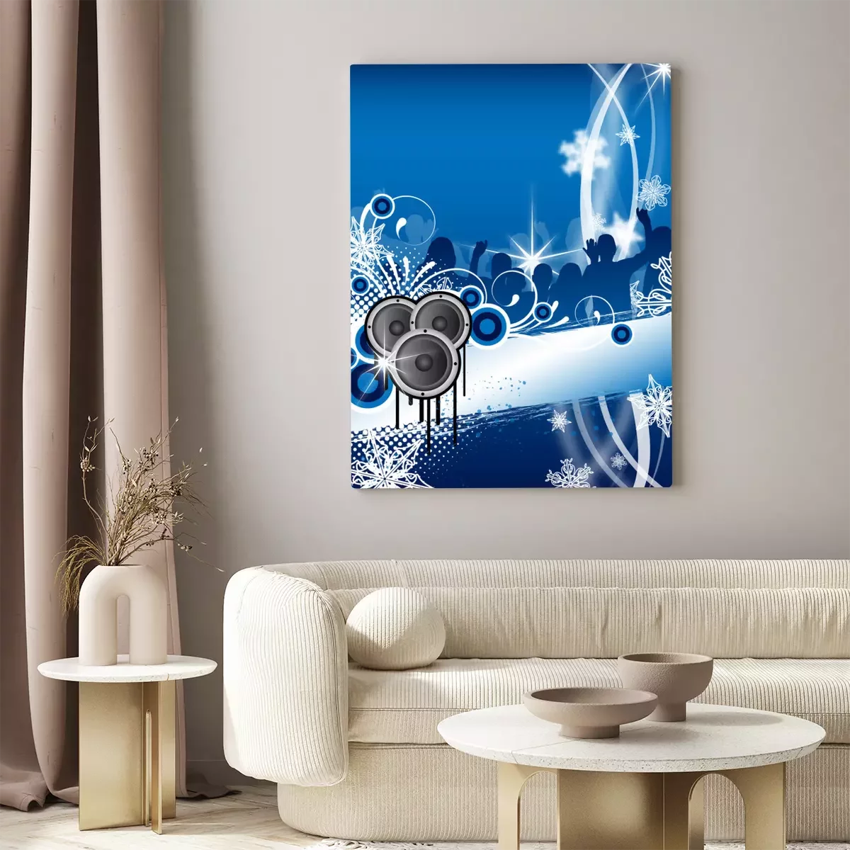 De print wordt aangebracht op hoogwaardig canvas dat op een schildersweefgetouw (spieraam) wordt gespannen. Omdat de print de zijranden bedekt, hoeft het ontwerp niet met een extra kader te worden omlijst. Wij raden ook composities aan die uit meerdere foto's bestaan en zo een coherente compositie vormen.