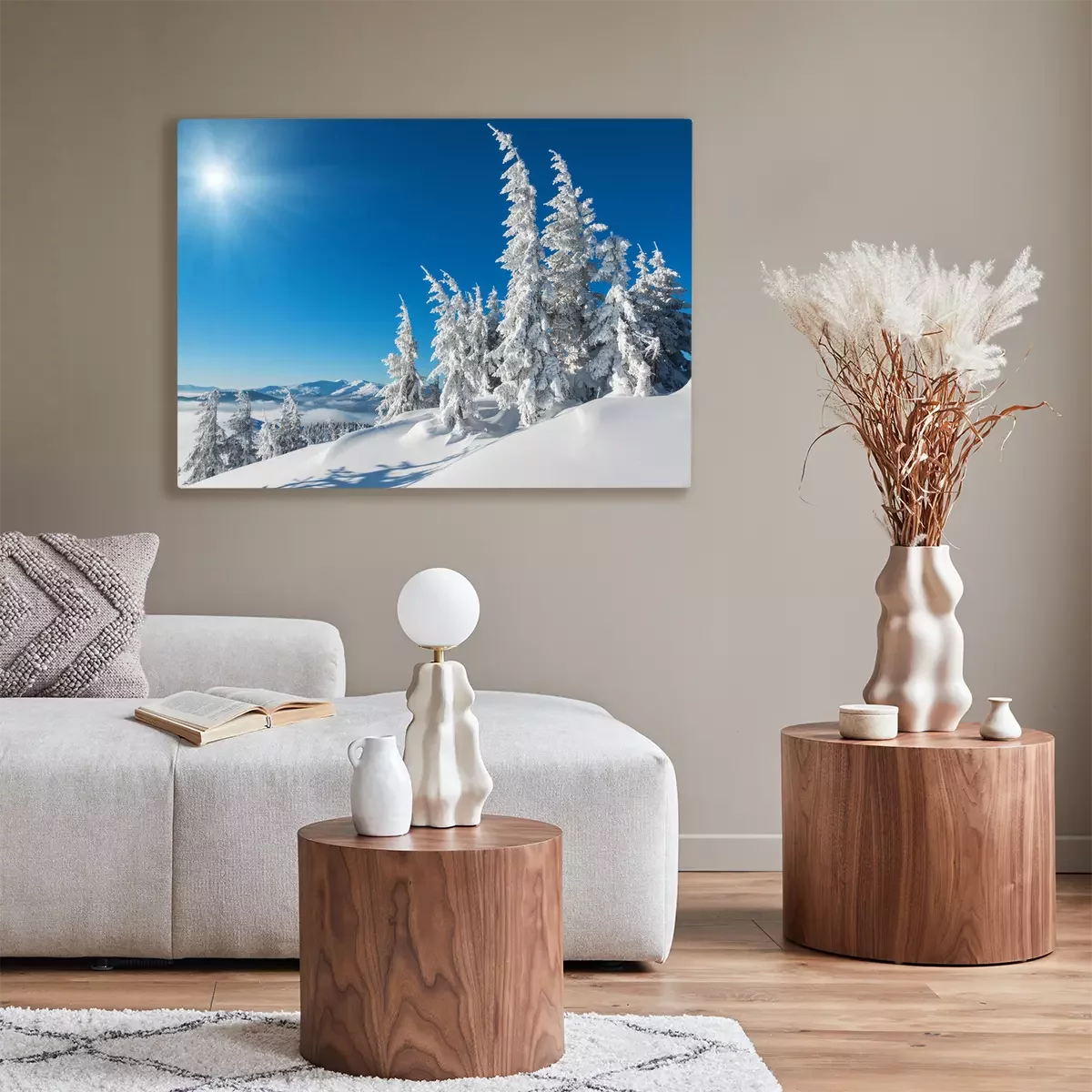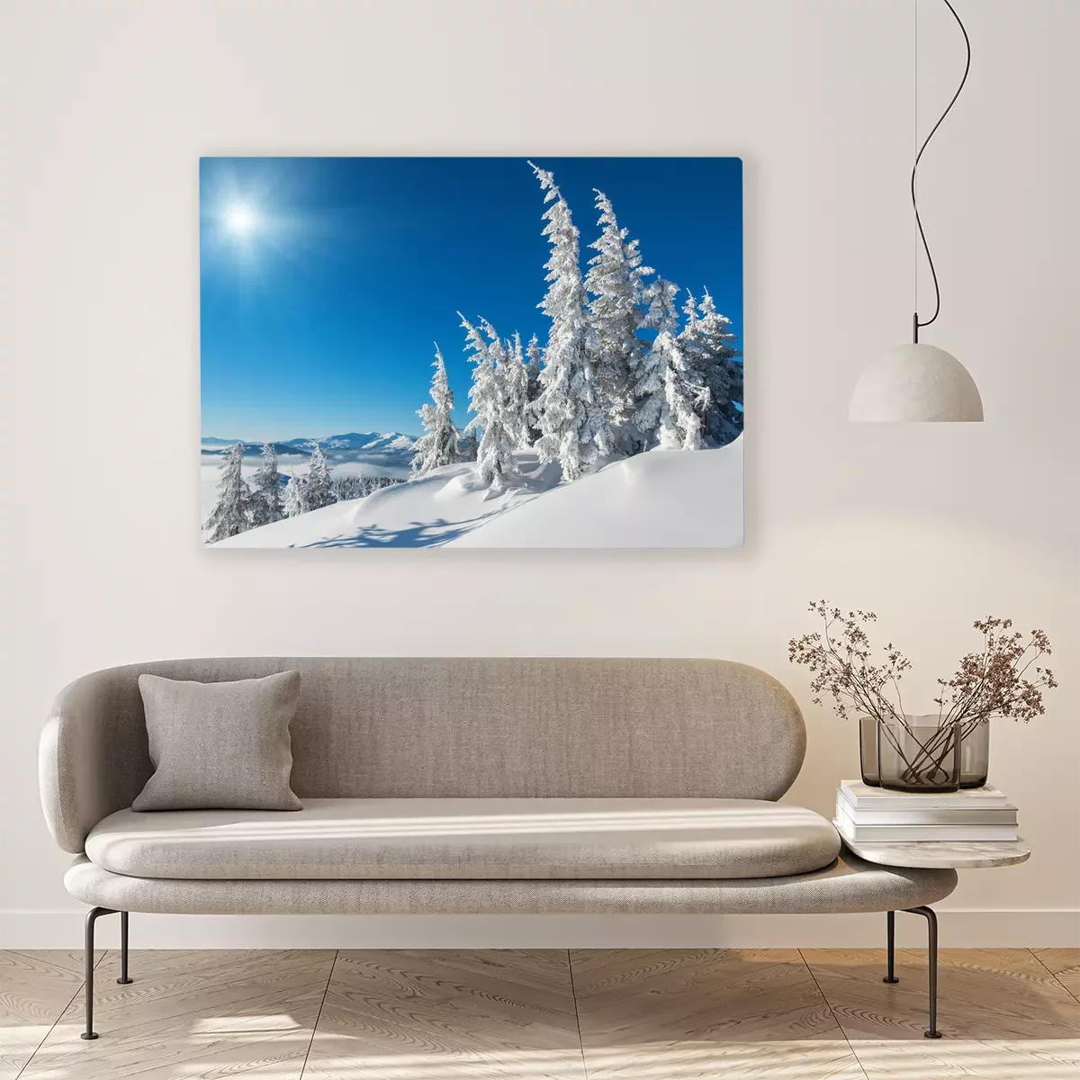 De print wordt aangebracht op hoogwaardig canvas dat op een schildersweefgetouw (spieraam) wordt gespannen. Omdat de print de zijranden bedekt, hoeft het ontwerp niet met een extra kader te worden omlijst. Wij raden ook composities aan die uit meerdere foto's bestaan en zo een coherente compositie vormen.