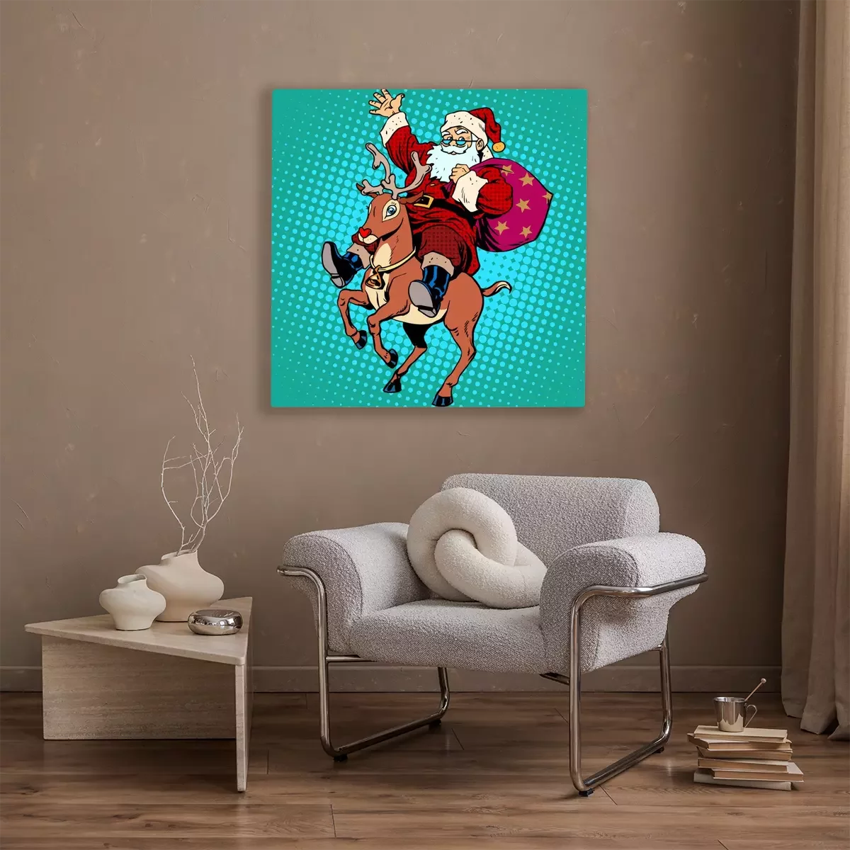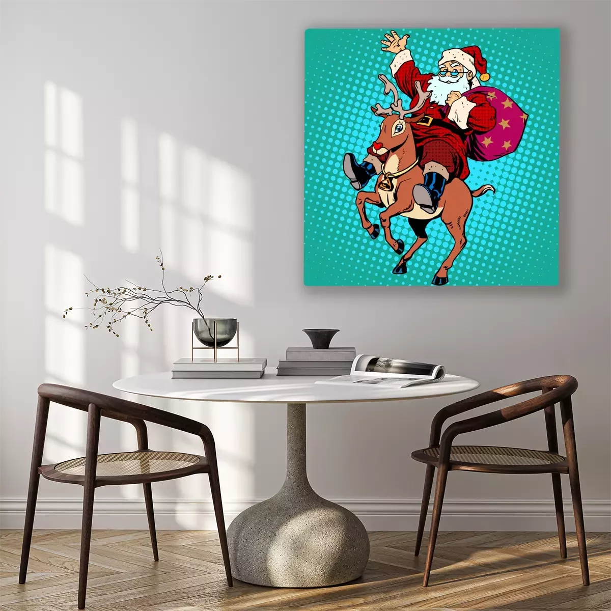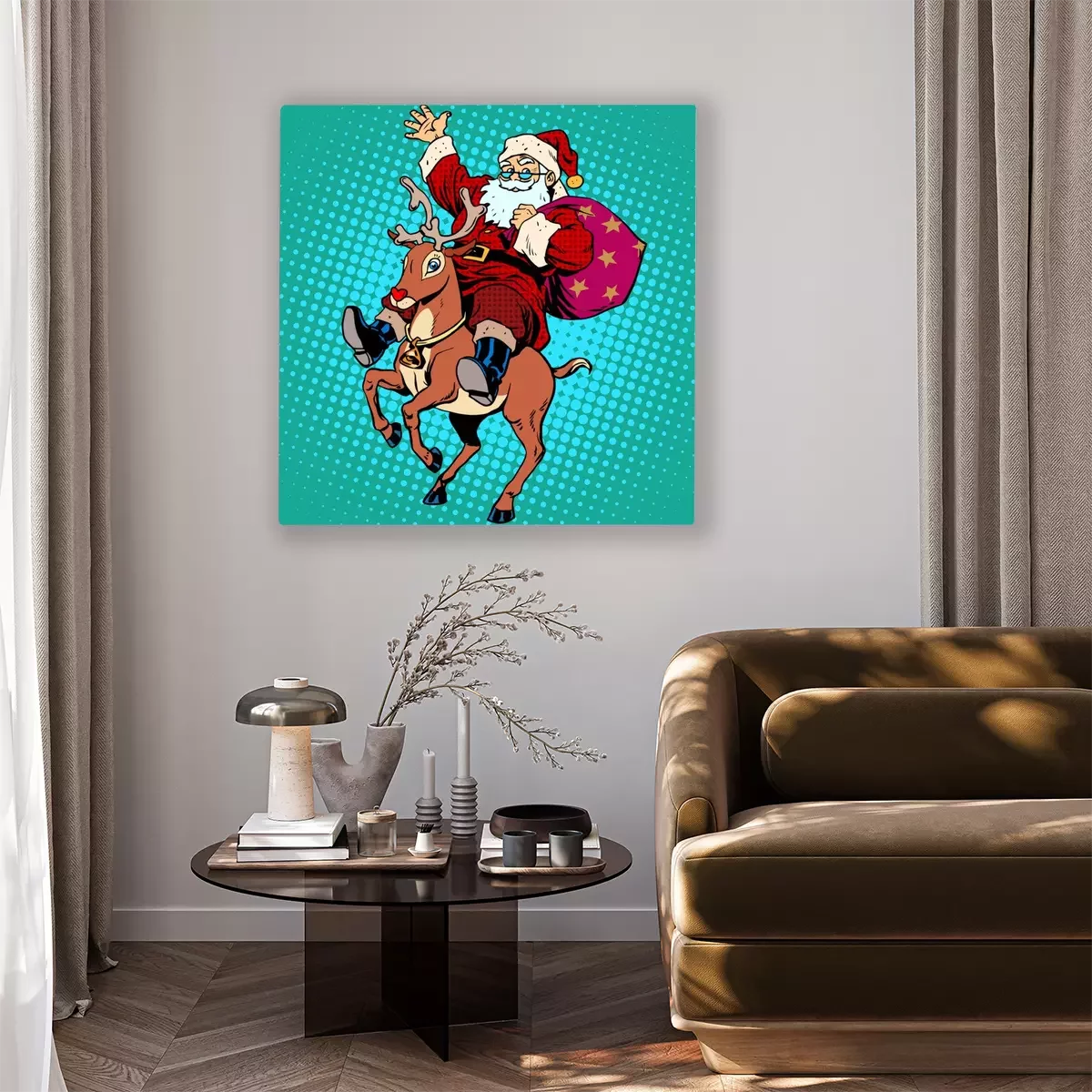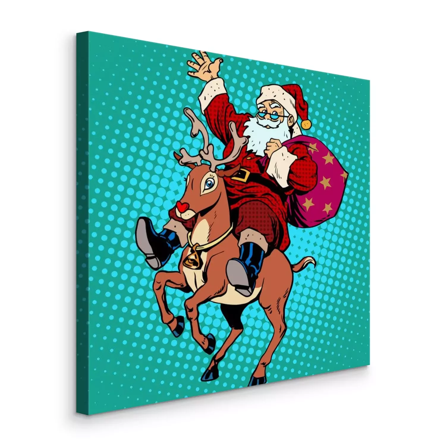 Canvas: Kerstman met de giften van Kerstmis rendier Rudolf