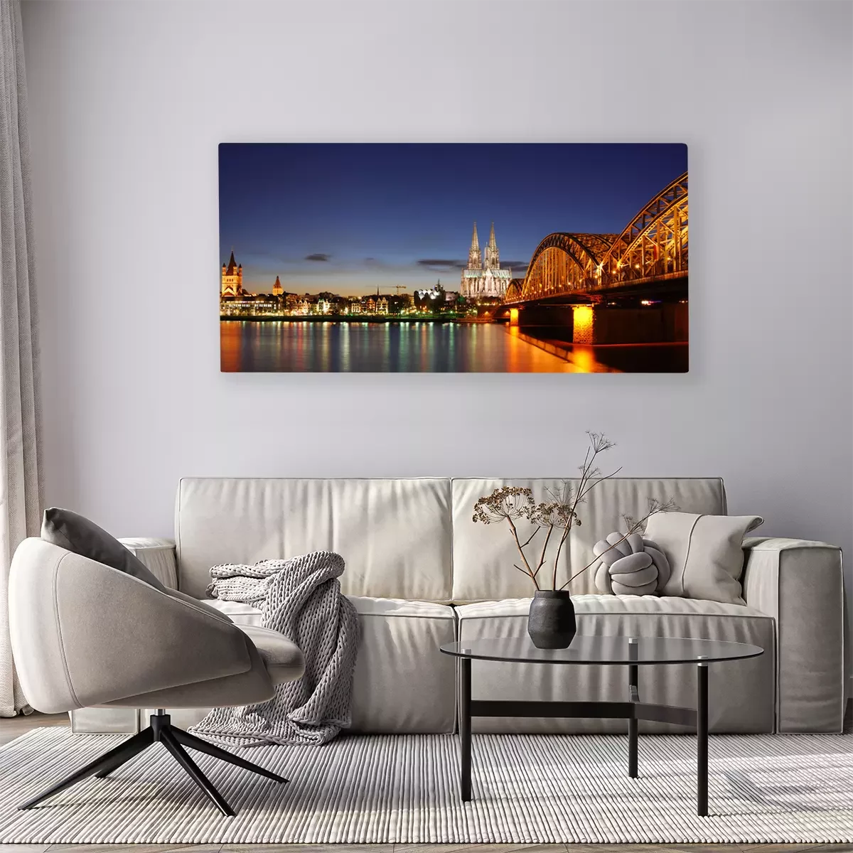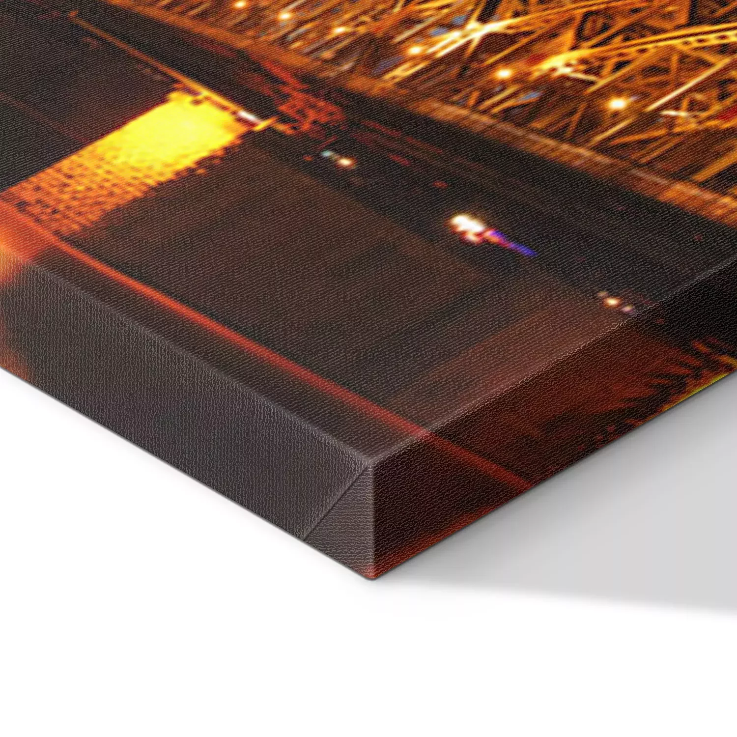 De print wordt aangebracht op hoogwaardig canvas dat op een schildersweefgetouw (spieraam) wordt gespannen. Omdat de print de zijranden bedekt, hoeft het ontwerp niet met een extra kader te worden omlijst. Wij raden ook composities aan die uit meerdere foto's bestaan en zo een coherente compositie vormen.