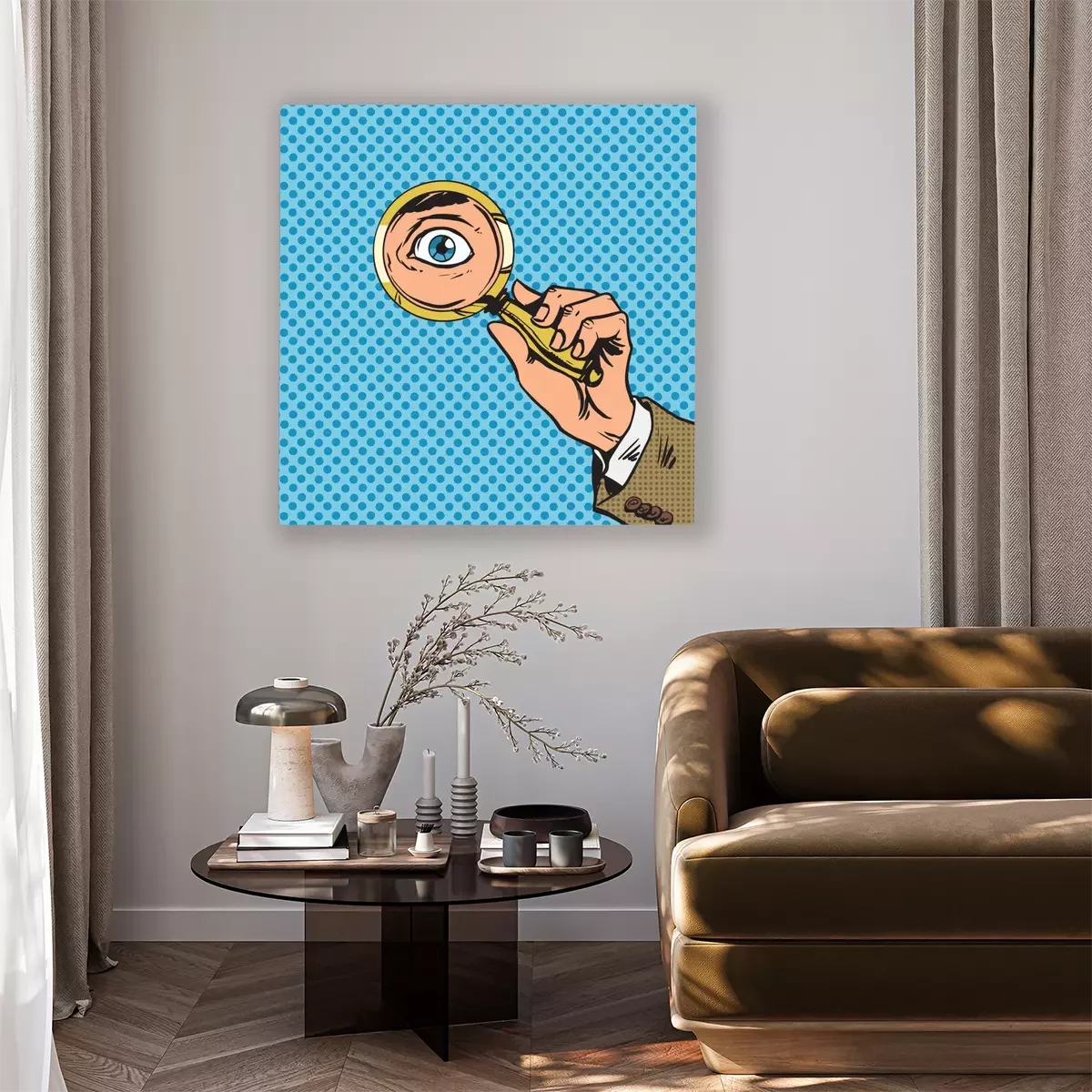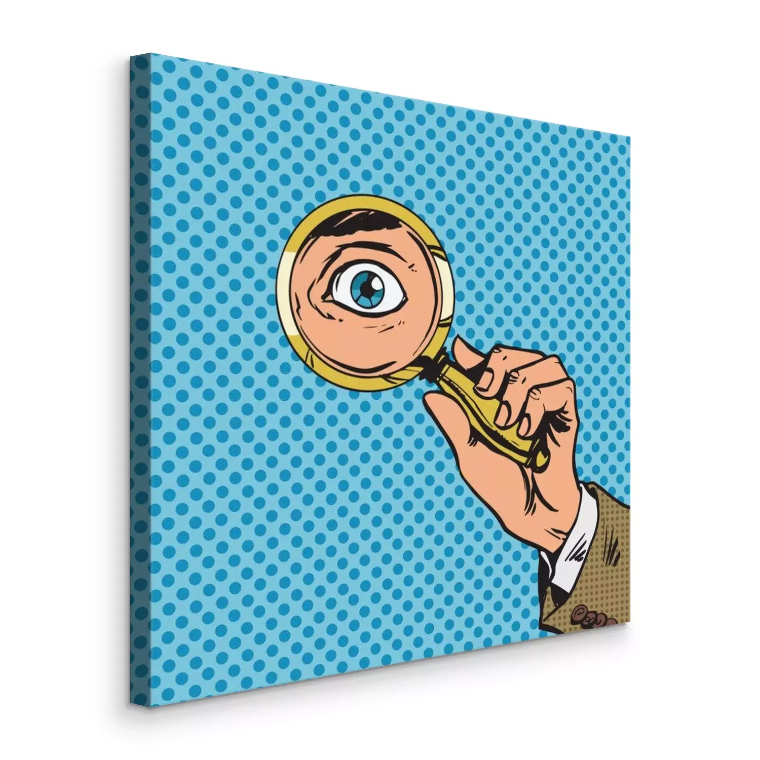 Canvas: Kijk door een vergrootglas op zoek ogen pop art comics opnieuw