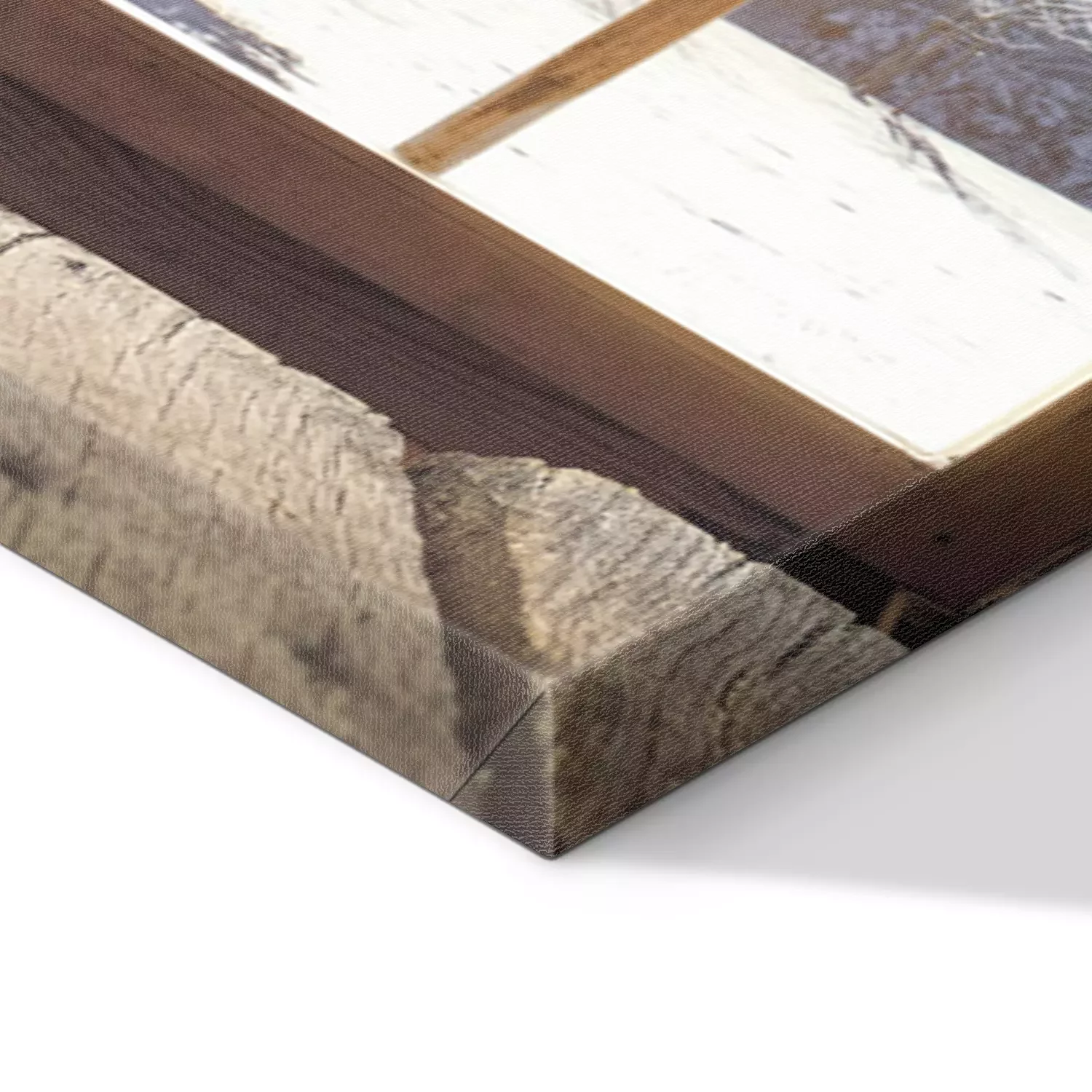 De print wordt aangebracht op hoogwaardig canvas dat op een schildersweefgetouw (spieraam) wordt gespannen. Omdat de print de zijranden bedekt, hoeft het ontwerp niet met een extra kader te worden omlijst. Wij raden ook composities aan die uit meerdere foto's bestaan en zo een coherente compositie vormen.