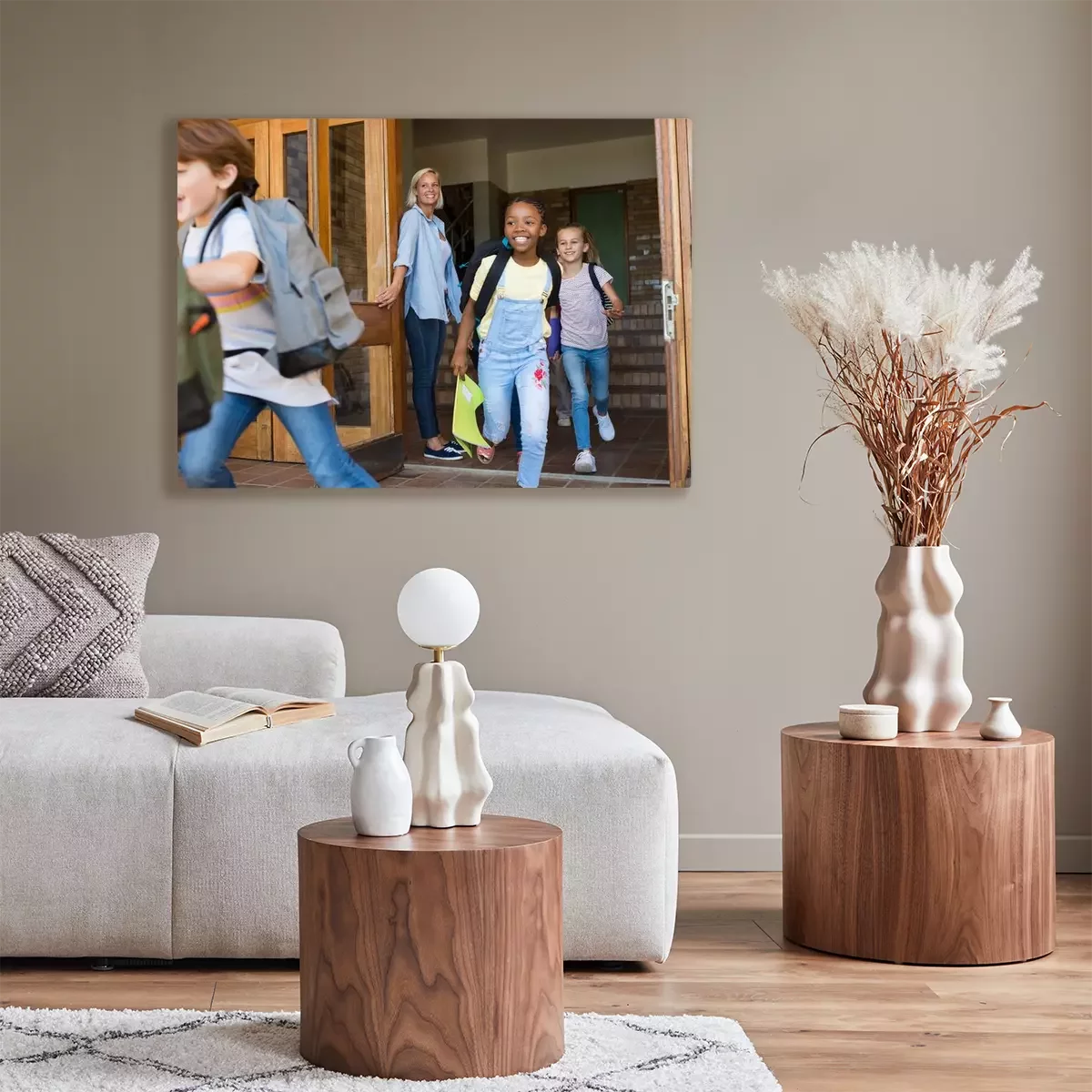 De print wordt aangebracht op hoogwaardig canvas dat op een schildersweefgetouw (spieraam) wordt gespannen. Omdat de print de zijranden bedekt, hoeft het ontwerp niet met een extra kader te worden omlijst. Wij raden ook composities aan die uit meerdere foto's bestaan en zo een coherente compositie vormen.