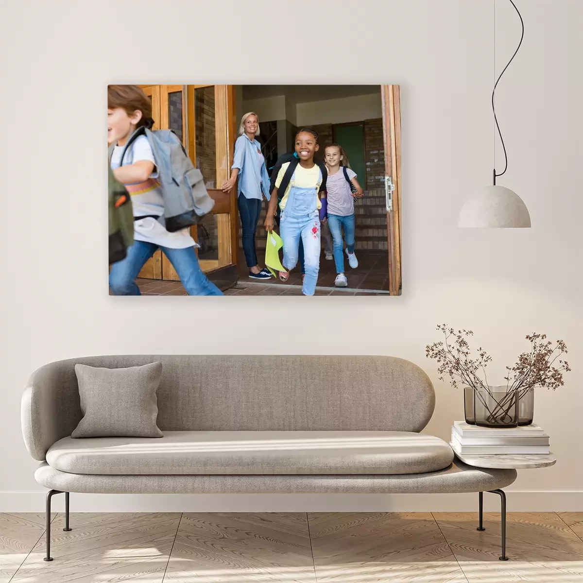 Canvas Kinderen die buiten school lopen