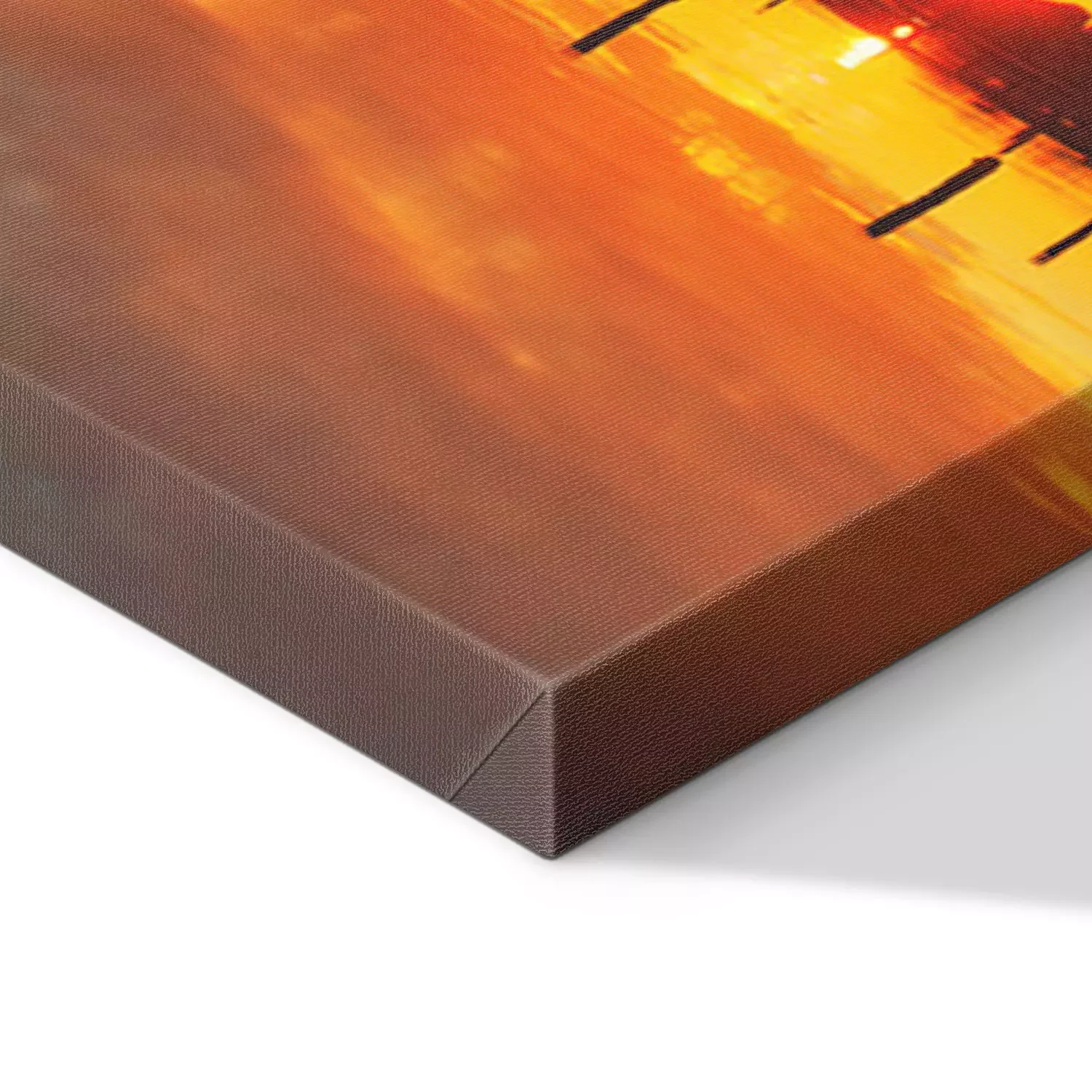 De print wordt aangebracht op hoogwaardig canvas dat op een schildersweefgetouw (spieraam) wordt gespannen. Omdat de print de zijranden bedekt, hoeft het ontwerp niet met een extra kader te worden omlijst. Wij raden ook composities aan die uit meerdere foto's bestaan en zo een coherente compositie vormen.