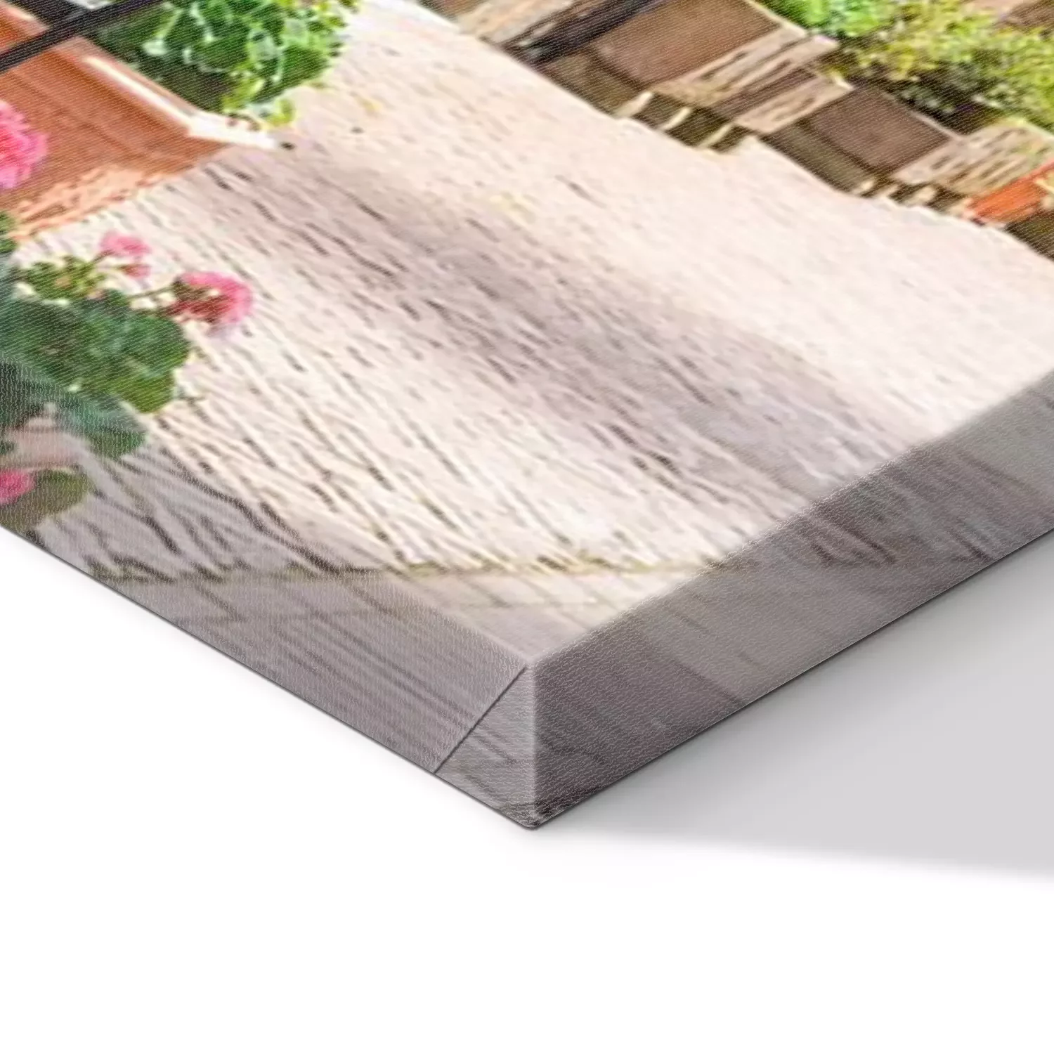 De print wordt aangebracht op hoogwaardig canvas dat op een schildersweefgetouw (spieraam) wordt gespannen. Omdat de print de zijranden bedekt, hoeft het ontwerp niet met een extra kader te worden omlijst. Wij raden ook composities aan die uit meerdere foto's bestaan en zo een coherente compositie vormen.