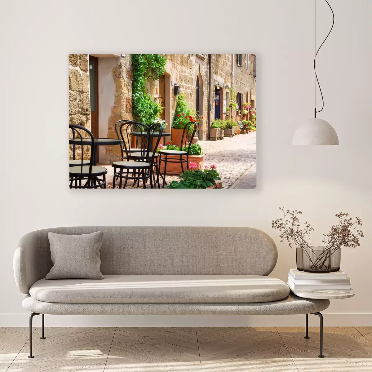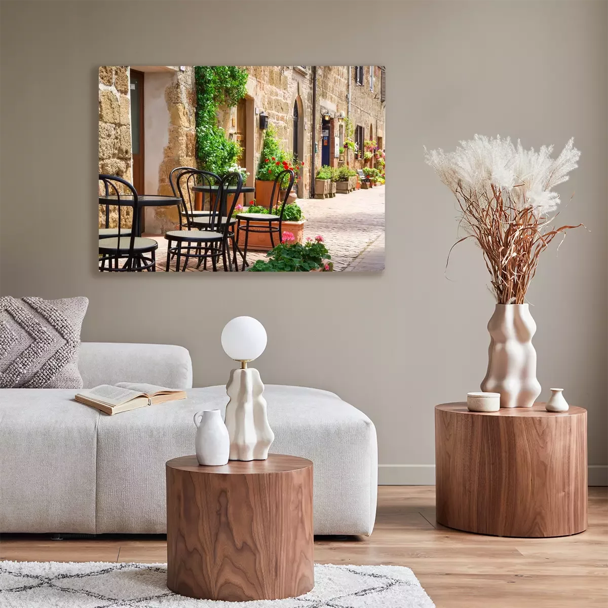 Canvas: Klein restaurant door de straat in de oude binnenstad italië
