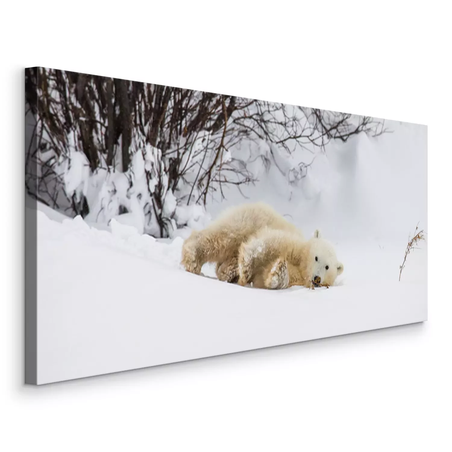 Canvas: Kleine Beer speelt met een tak in de toendra. Canada. Een uitstekende illustratie.