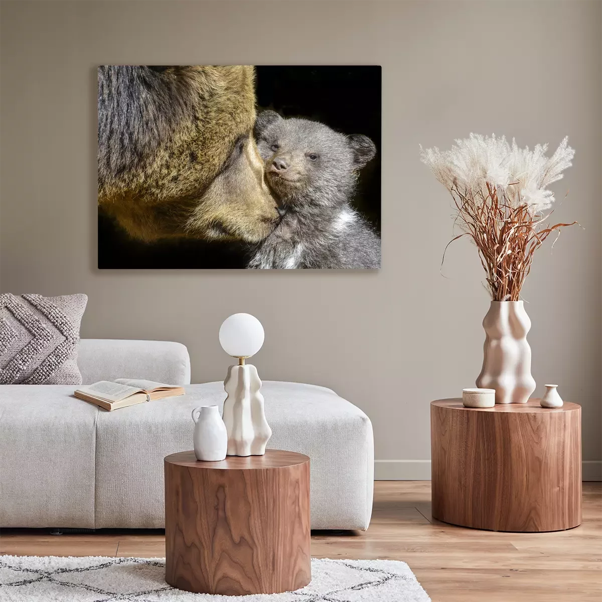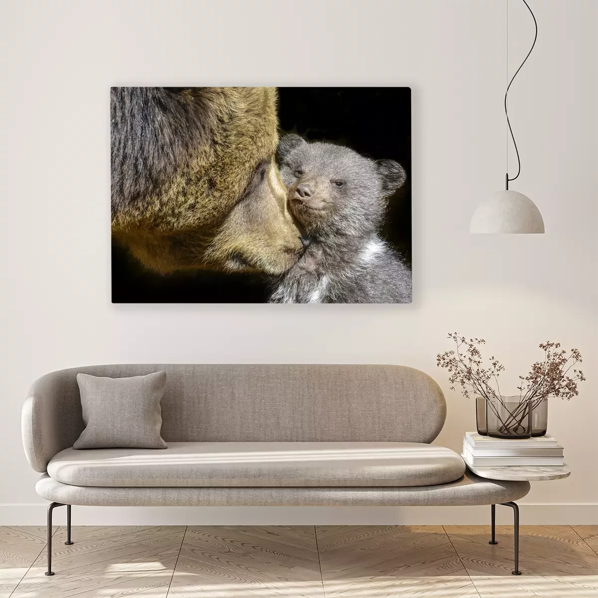 Canvas: kleine bruine beer en zijn moeder