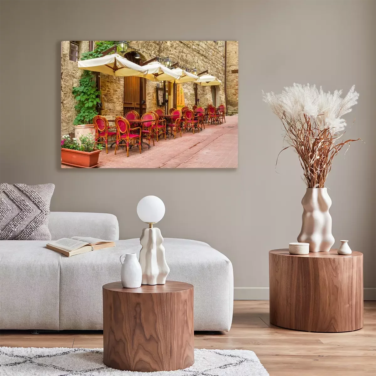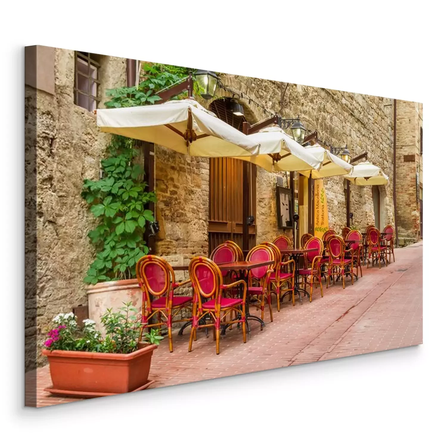 Canvas Kleine cafe op de hoek van de oude stad in Italië