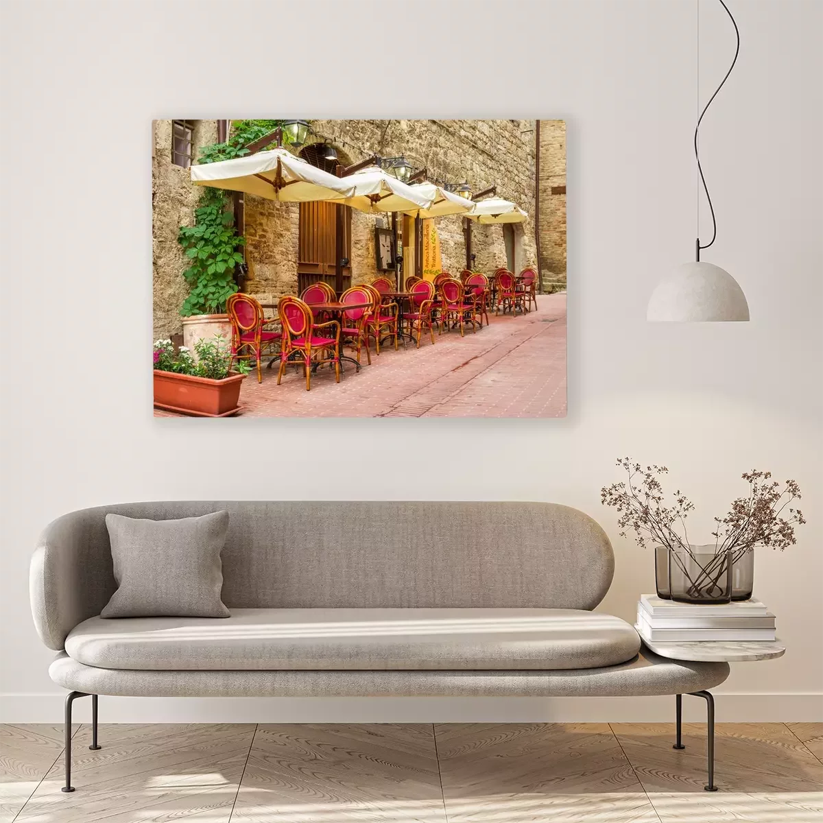 Canvas: Kleine cafe op de hoek van de oude stad in Italië