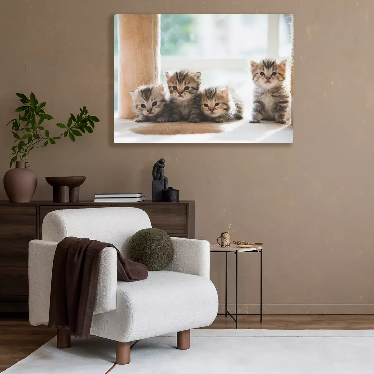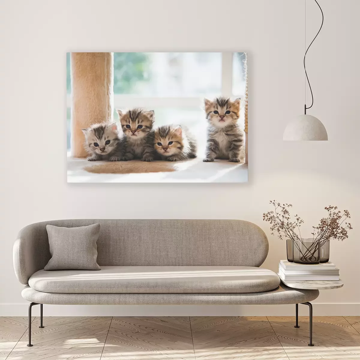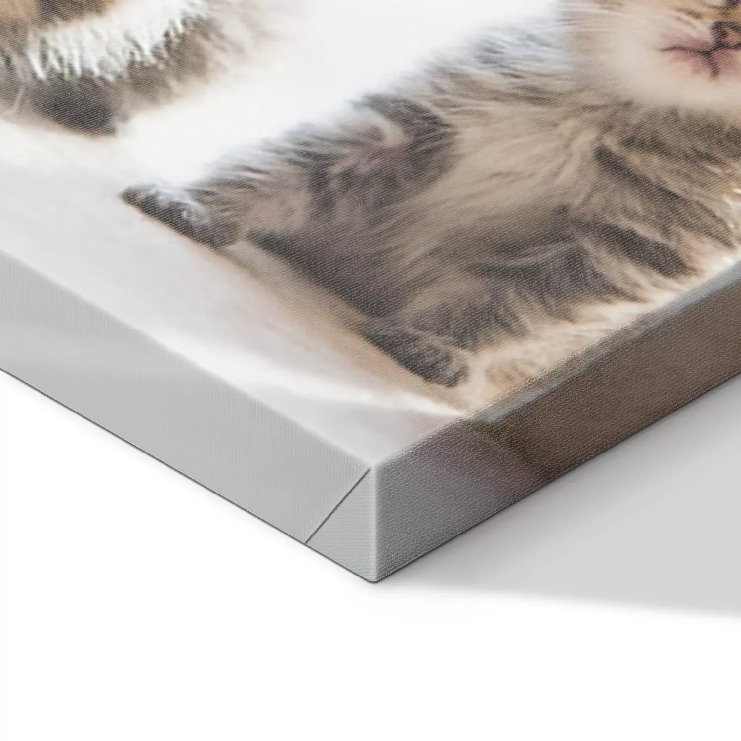 De print wordt aangebracht op hoogwaardig canvas dat op een schildersweefgetouw (spieraam) wordt gespannen. Omdat de print de zijranden bedekt, hoeft het ontwerp niet met een extra kader te worden omlijst. Wij raden ook composities aan die uit meerdere foto's bestaan en zo een coherente compositie vormen.