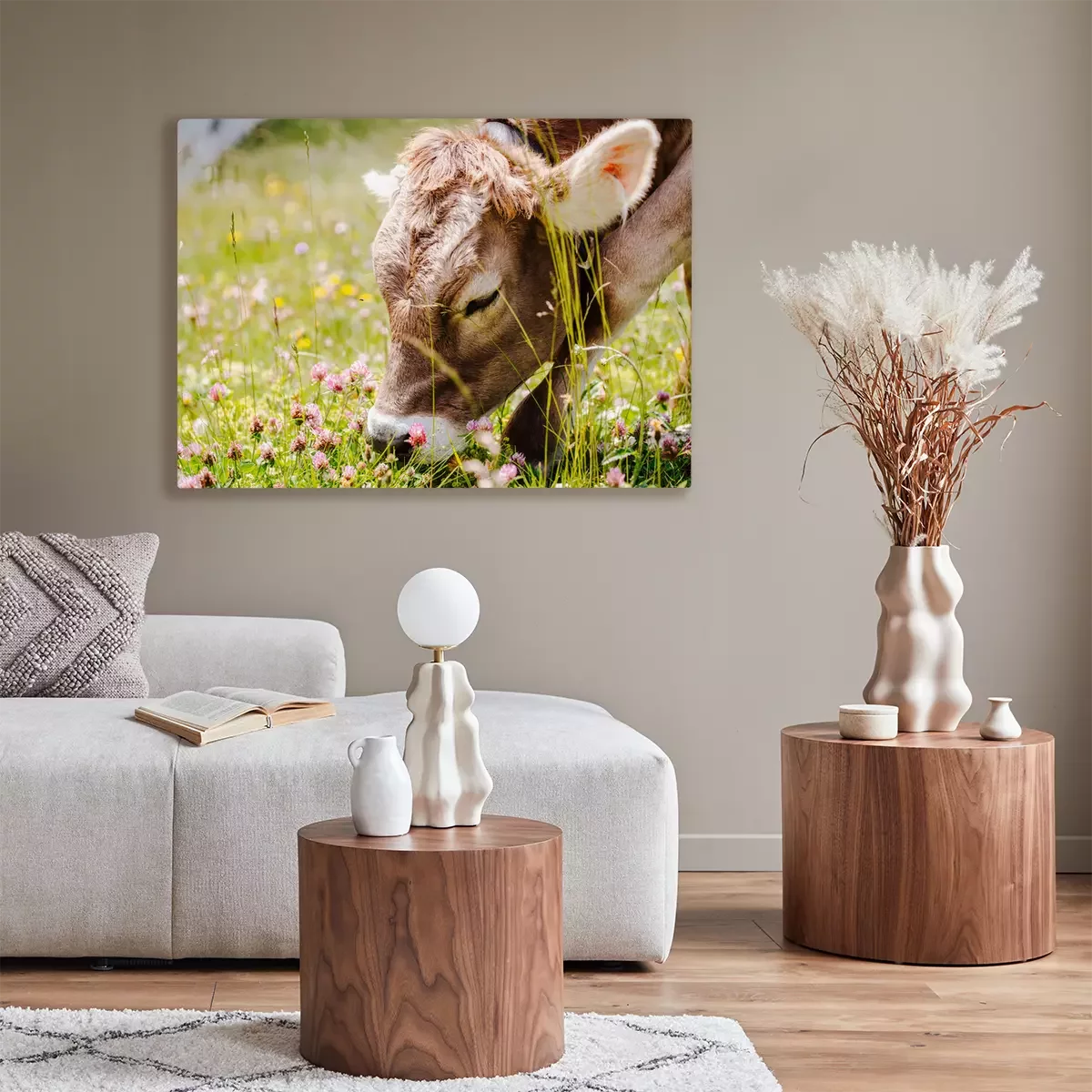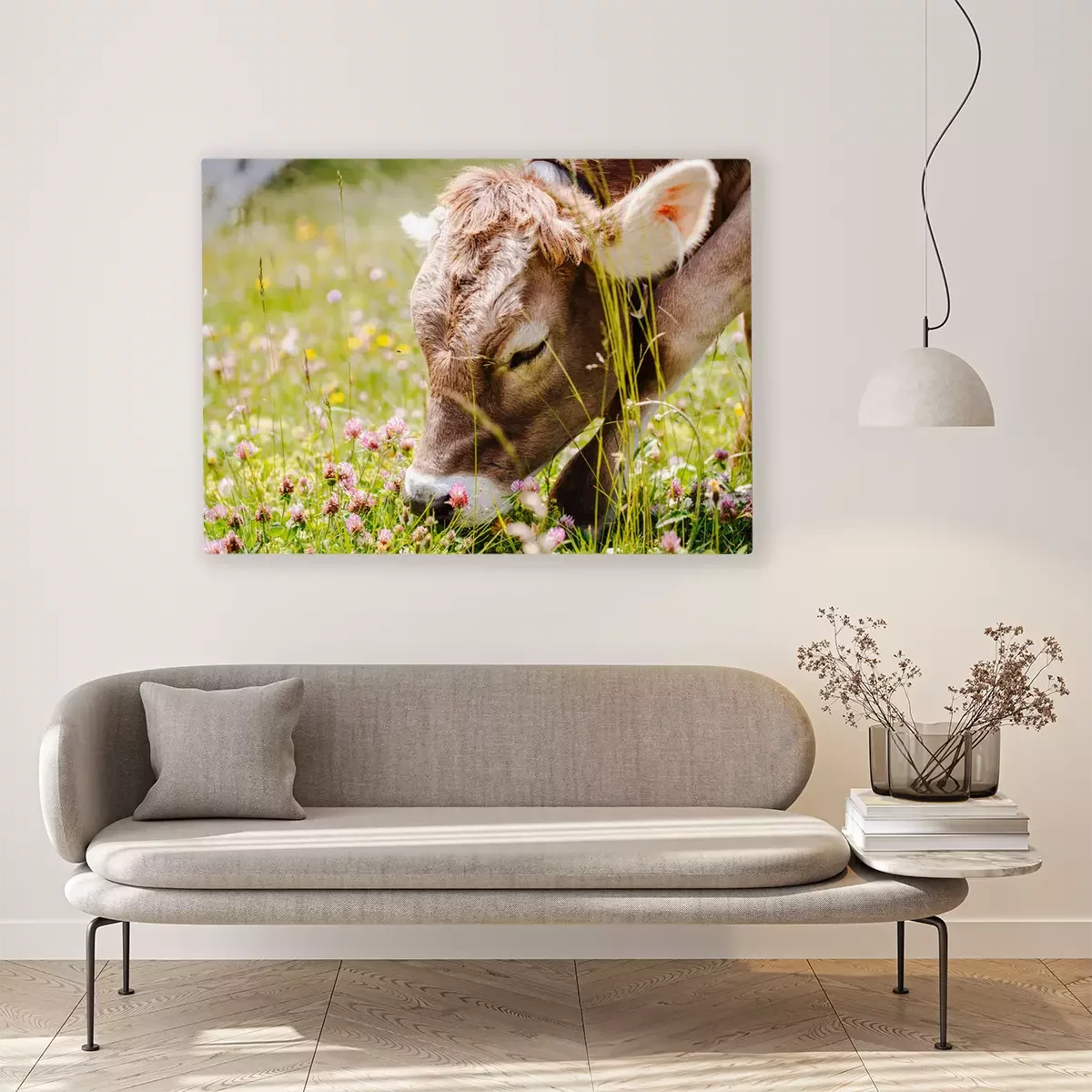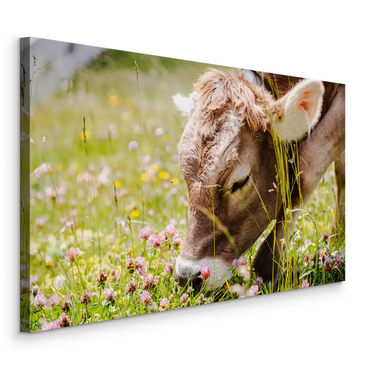 Canvas: Kleine koe graast in de wei