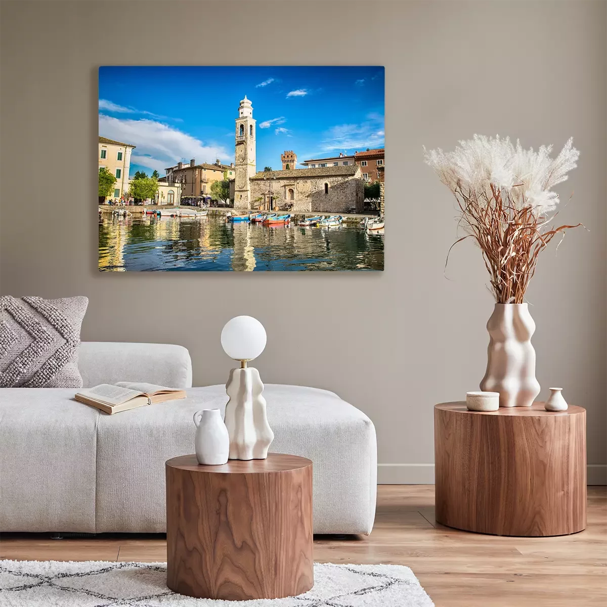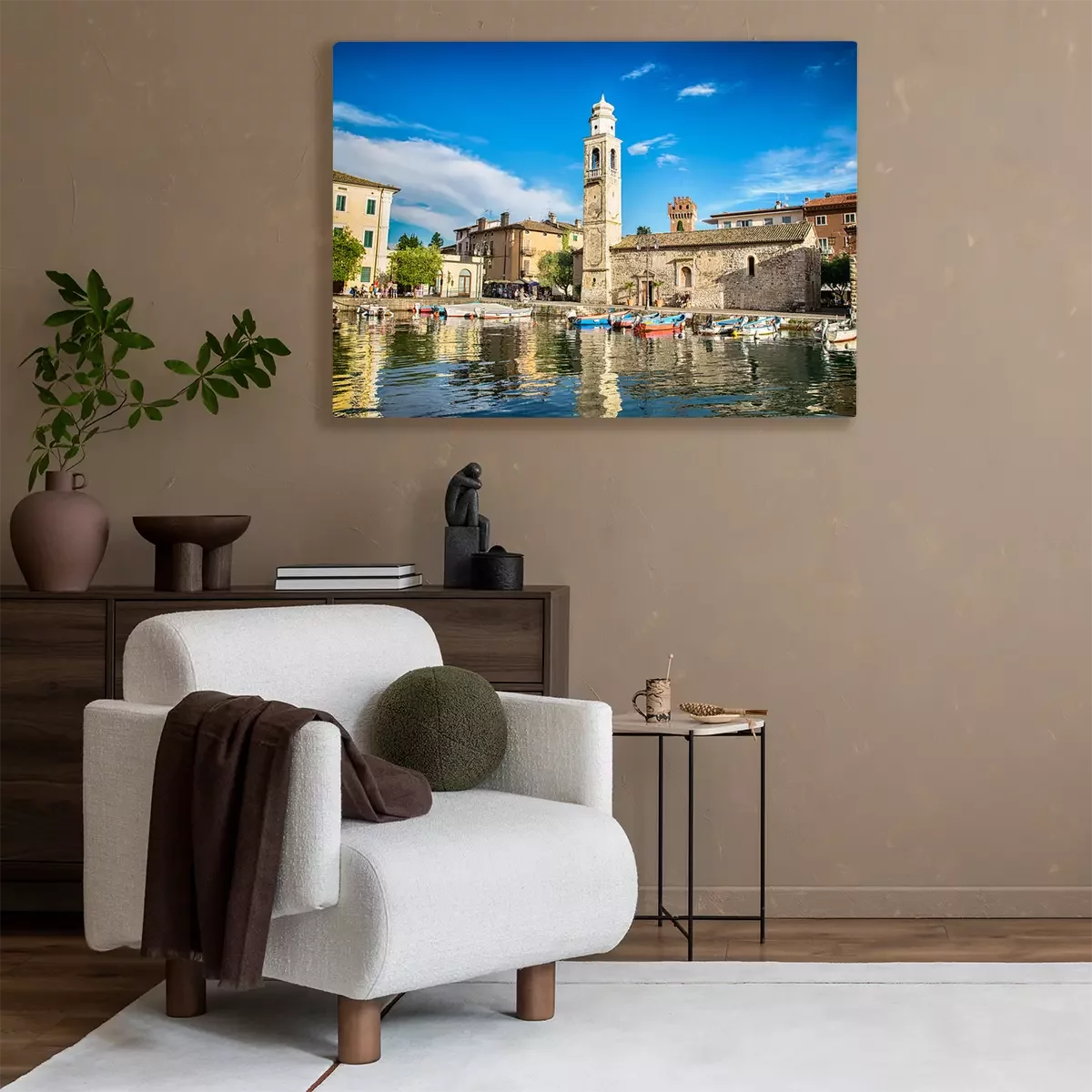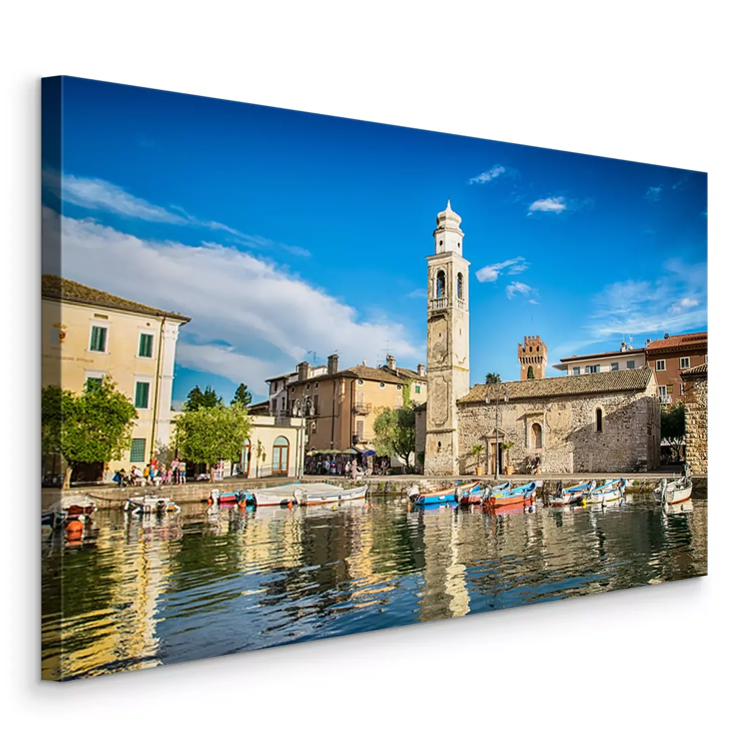 Canvas: Kleine, romantische haven van Lazise aan het Gardameer in Italië.