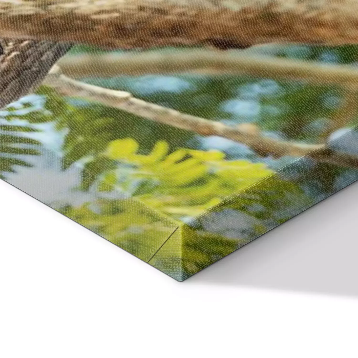 De print wordt aangebracht op hoogwaardig canvas dat op een schildersweefgetouw (spieraam) wordt gespannen. Omdat de print de zijranden bedekt, hoeft het ontwerp niet met een extra kader te worden omlijst. Wij raden ook composities aan die uit meerdere foto's bestaan en zo een coherente compositie vormen.