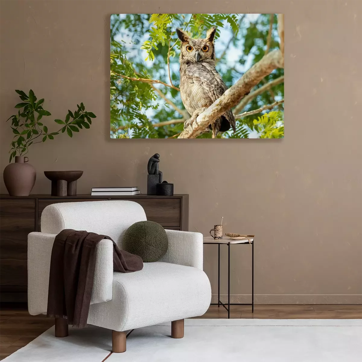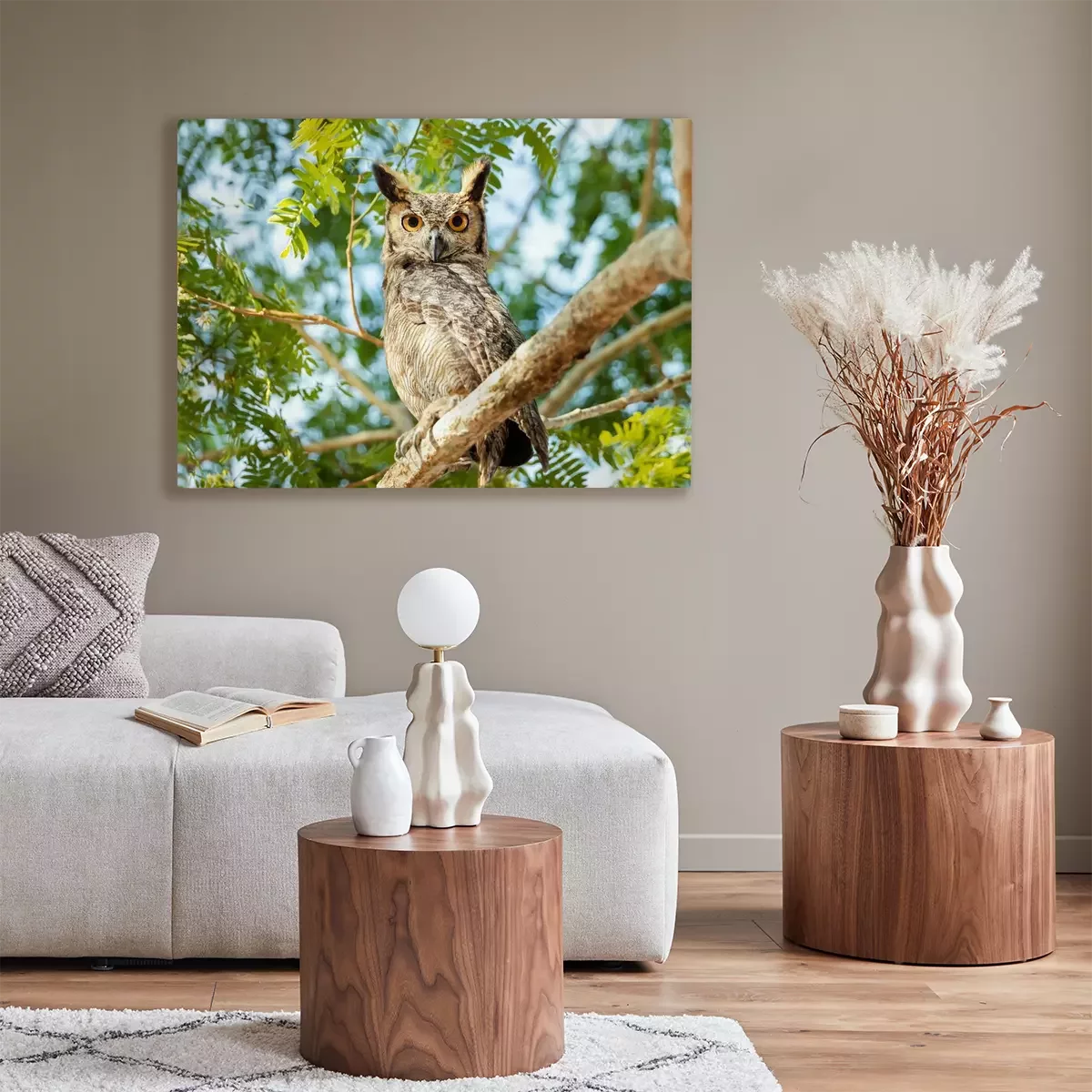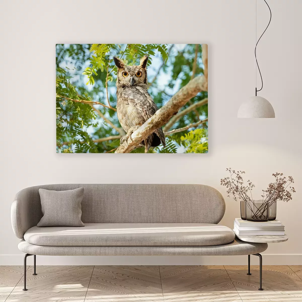 Canvas: Kleine uil op de boom