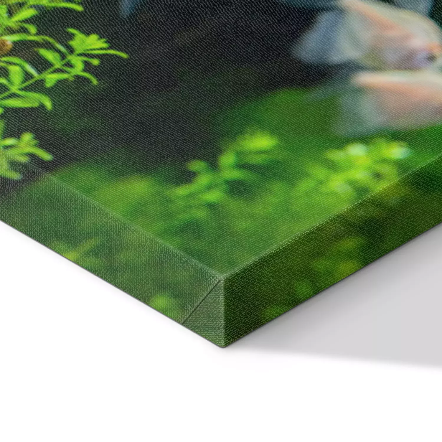 De print wordt aangebracht op hoogwaardig canvas dat op een schildersweefgetouw (spieraam) wordt gespannen. Omdat de print de zijranden bedekt, hoeft het ontwerp niet met een extra kader te worden omlijst. Wij raden ook composities aan die uit meerdere foto's bestaan en zo een coherente compositie vormen.