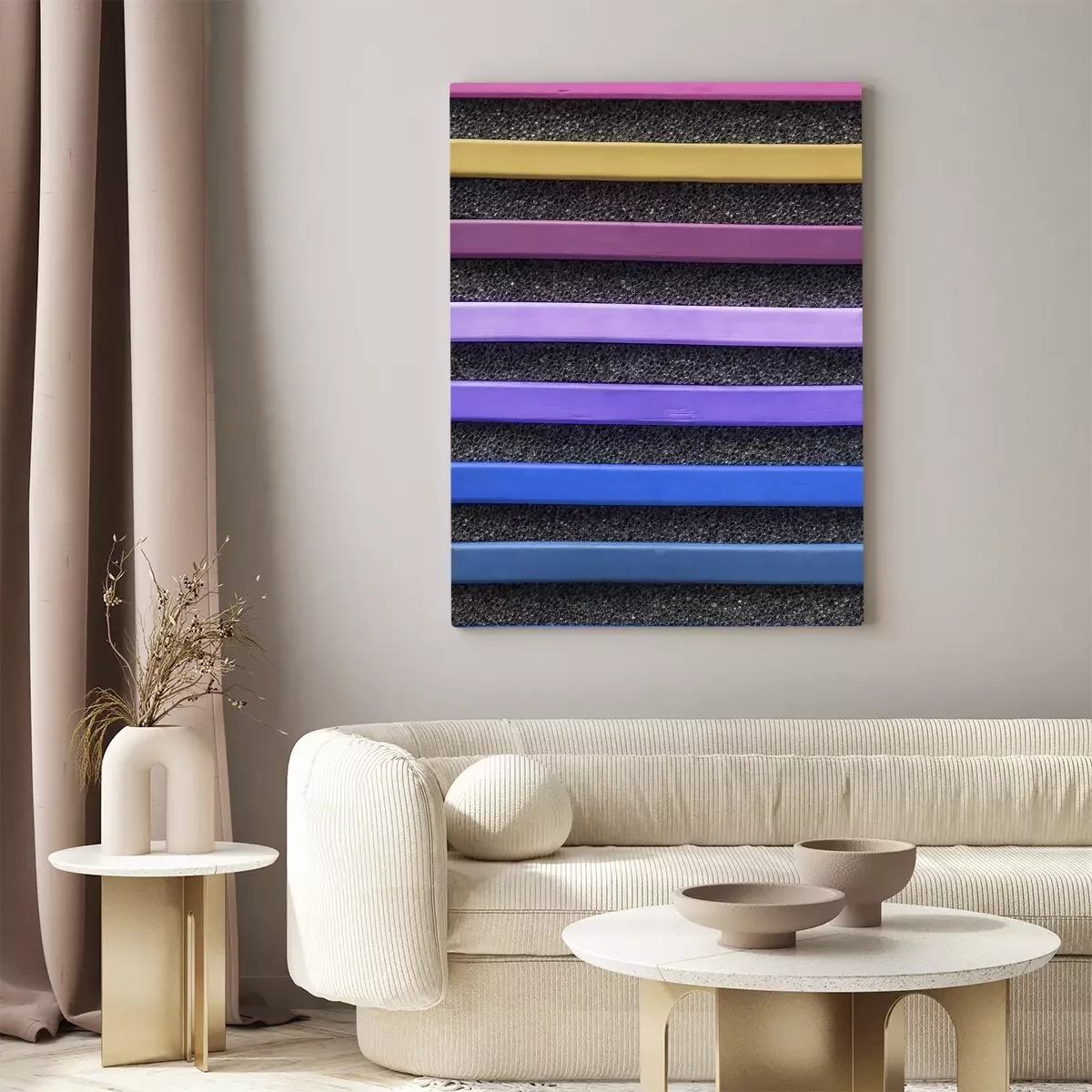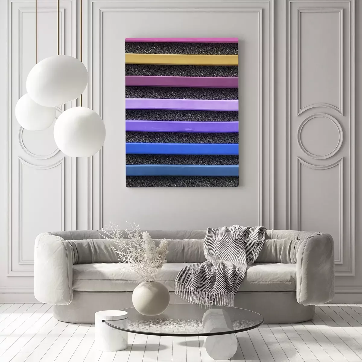 De print wordt aangebracht op hoogwaardig canvas dat op een schildersweefgetouw (spieraam) wordt gespannen. Omdat de print de zijranden bedekt, hoeft het ontwerp niet met een extra kader te worden omlijst. Wij raden ook composities aan die uit meerdere foto's bestaan en zo een coherente compositie vormen.