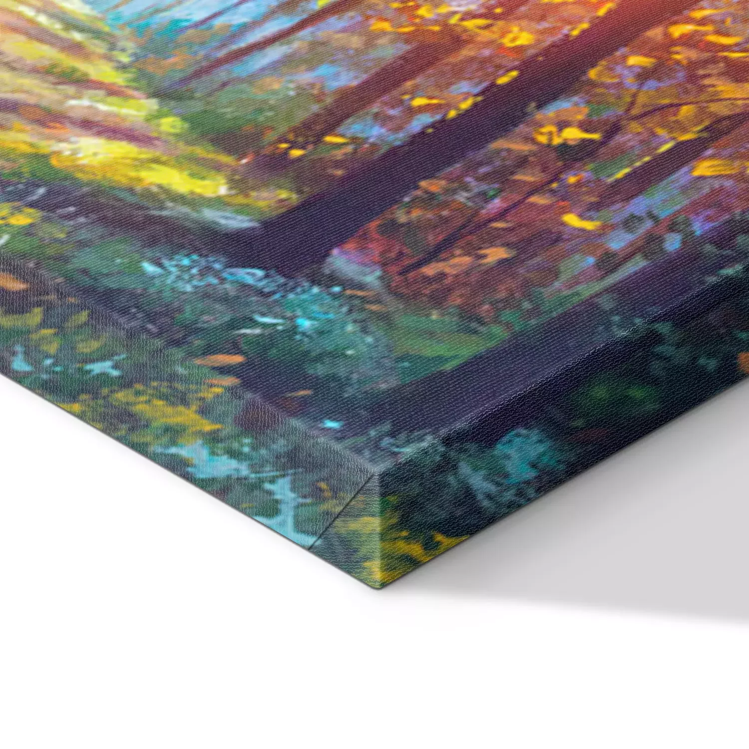 De print wordt aangebracht op hoogwaardig canvas dat op een schildersweefgetouw (spieraam) wordt gespannen. Omdat de print de zijranden bedekt, hoeft het ontwerp niet met een extra kader te worden omlijst. Wij raden ook composities aan die uit meerdere foto's bestaan en zo een coherente compositie vormen.