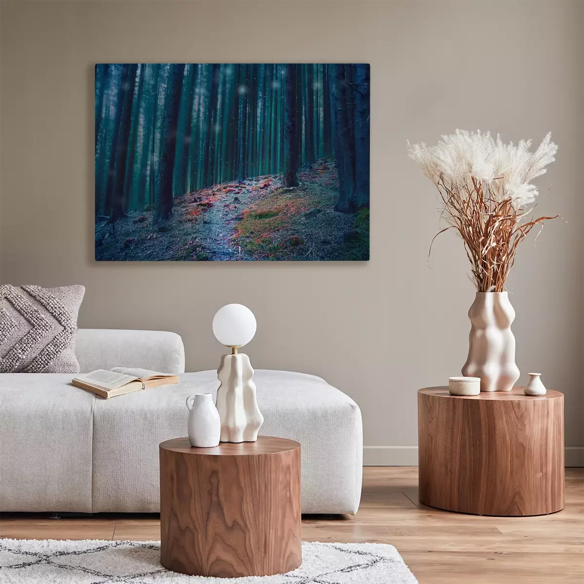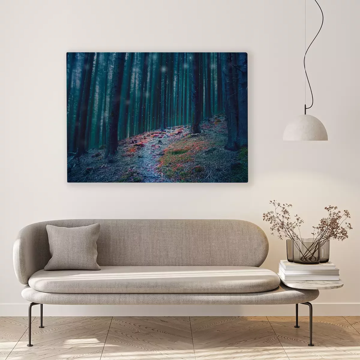 Canvas: Kleurrijk pad in een donker bos