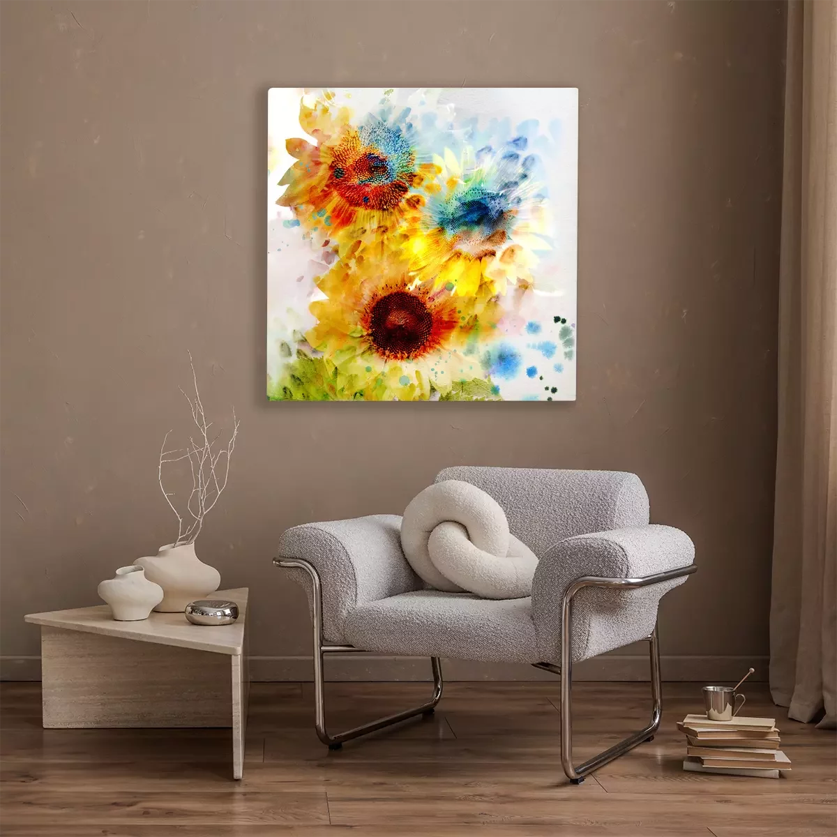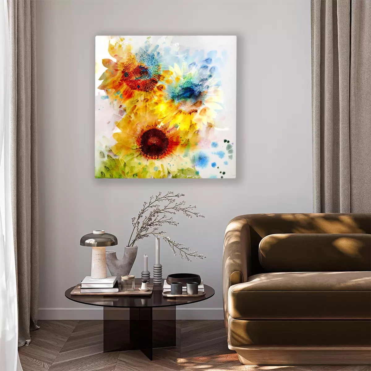 De print wordt aangebracht op hoogwaardig canvas dat op een schildersweefgetouw (spieraam) wordt gespannen. Omdat de print de zijranden bedekt, hoeft het ontwerp niet met een extra kader te worden omlijst. Wij raden ook composities aan die uit meerdere foto's bestaan en zo een coherente compositie vormen.