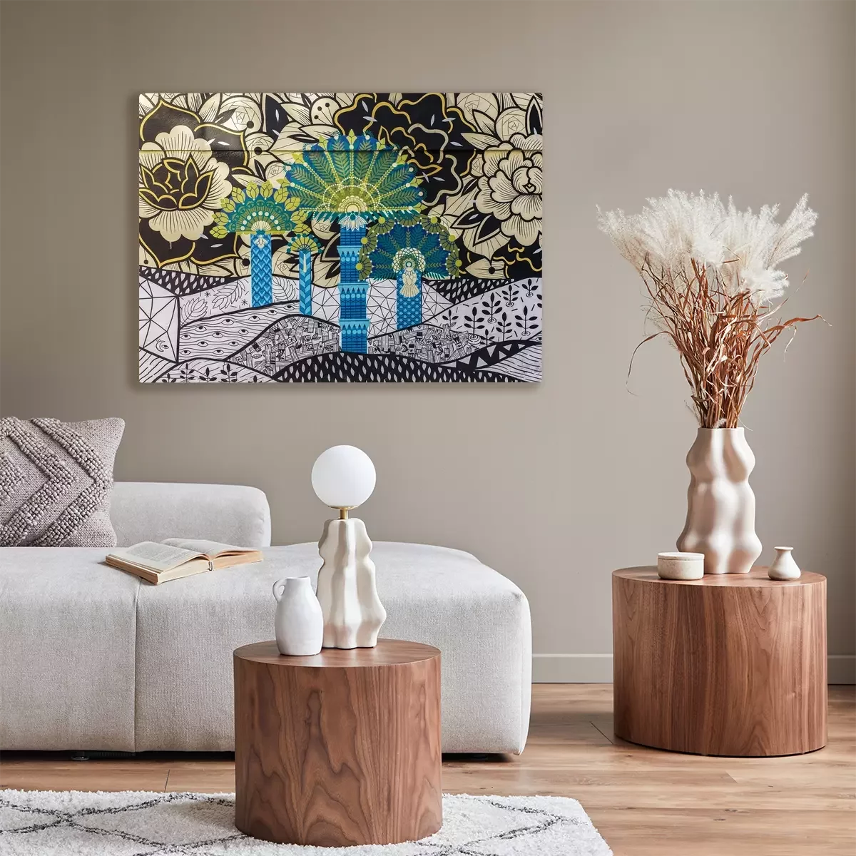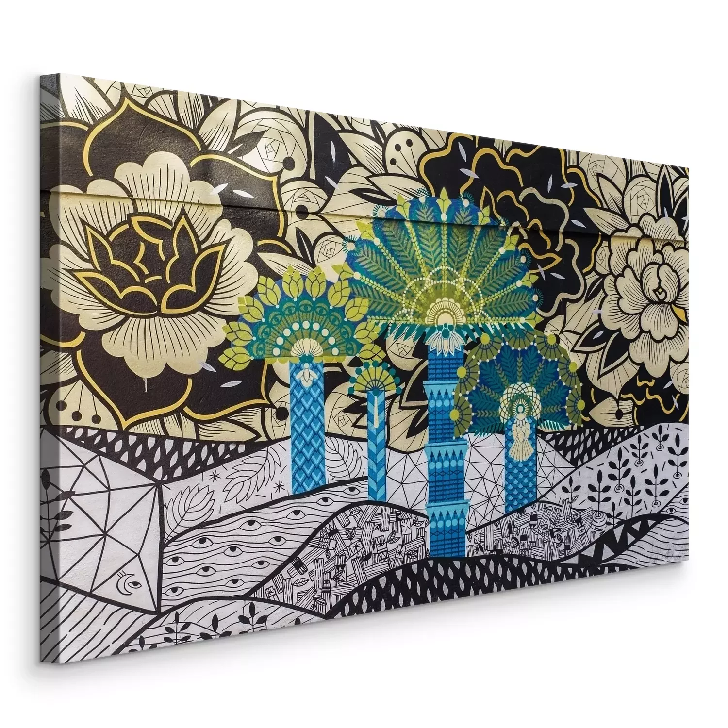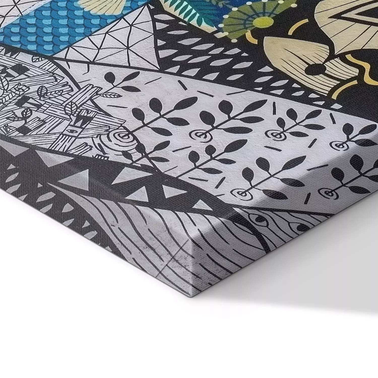 De print wordt aangebracht op hoogwaardig canvas dat op een schildersweefgetouw (spieraam) wordt gespannen. Omdat de print de zijranden bedekt, hoeft het ontwerp niet met een extra kader te worden omlijst. Wij raden ook composities aan die uit meerdere foto's bestaan en zo een coherente compositie vormen.