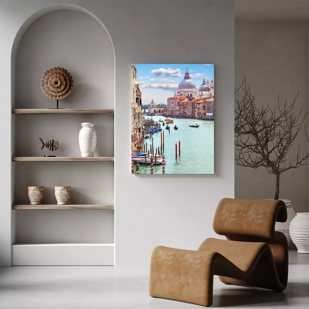 De print wordt aangebracht op hoogwaardig canvas dat op een schildersweefgetouw (spieraam) wordt gespannen. Omdat de print de zijranden bedekt, hoeft het ontwerp niet met een extra kader te worden omlijst. Wij raden ook composities aan die uit meerdere foto's bestaan en zo een coherente compositie vormen.