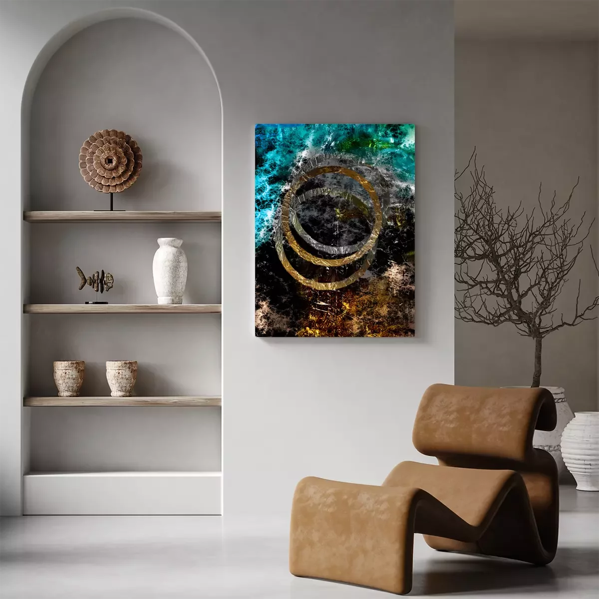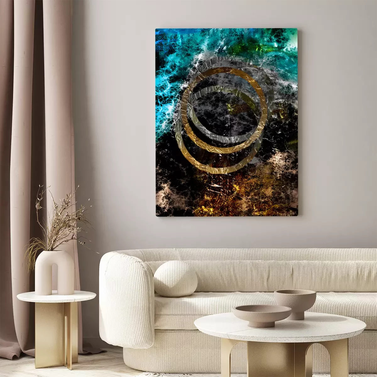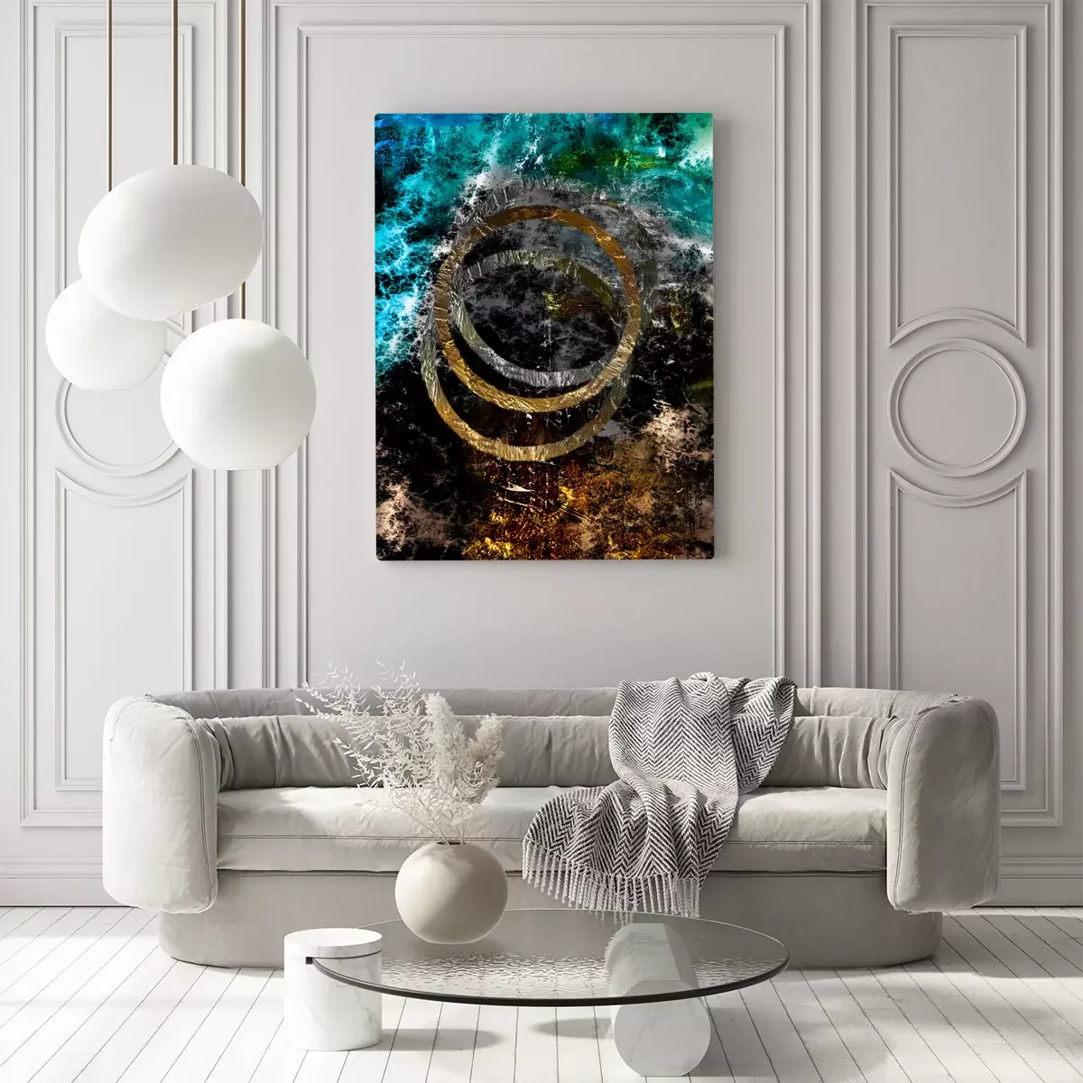 Kleurrijke abstractie met zilveren en gouden cirkels