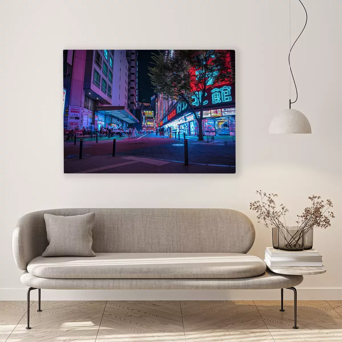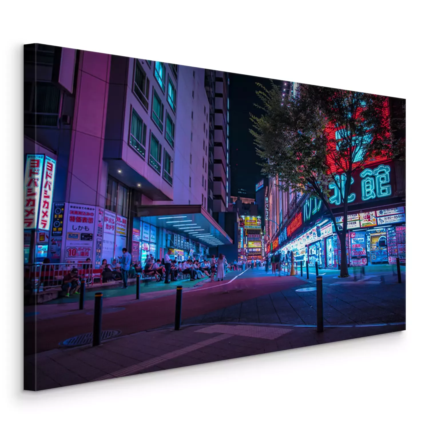 Canvas: Kleurrijke borden 's nachts in Tokio