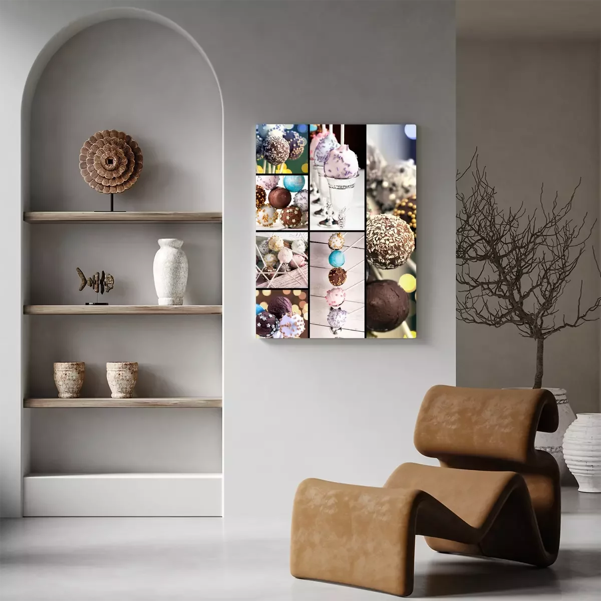 De print wordt aangebracht op hoogwaardig canvas dat op een schildersweefgetouw (spieraam) wordt gespannen. Omdat de print de zijranden bedekt, hoeft het ontwerp niet met een extra kader te worden omlijst. Wij raden ook composities aan die uit meerdere foto's bestaan en zo een coherente compositie vormen.