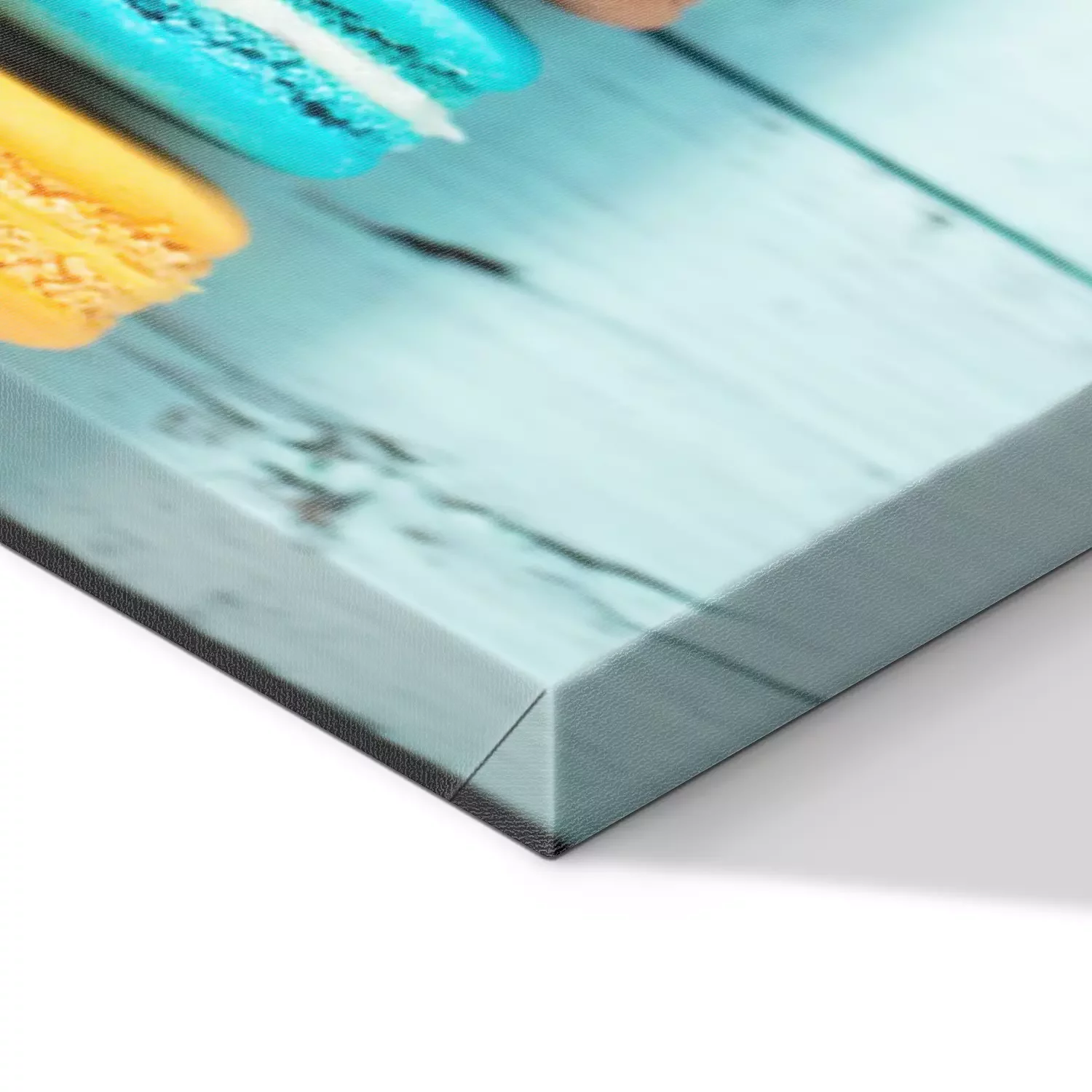 De print wordt aangebracht op hoogwaardig canvas dat op een schildersweefgetouw (spieraam) wordt gespannen. Omdat de print de zijranden bedekt, hoeft het ontwerp niet met een extra kader te worden omlijst. Wij raden ook composities aan die uit meerdere foto's bestaan en zo een coherente compositie vormen.