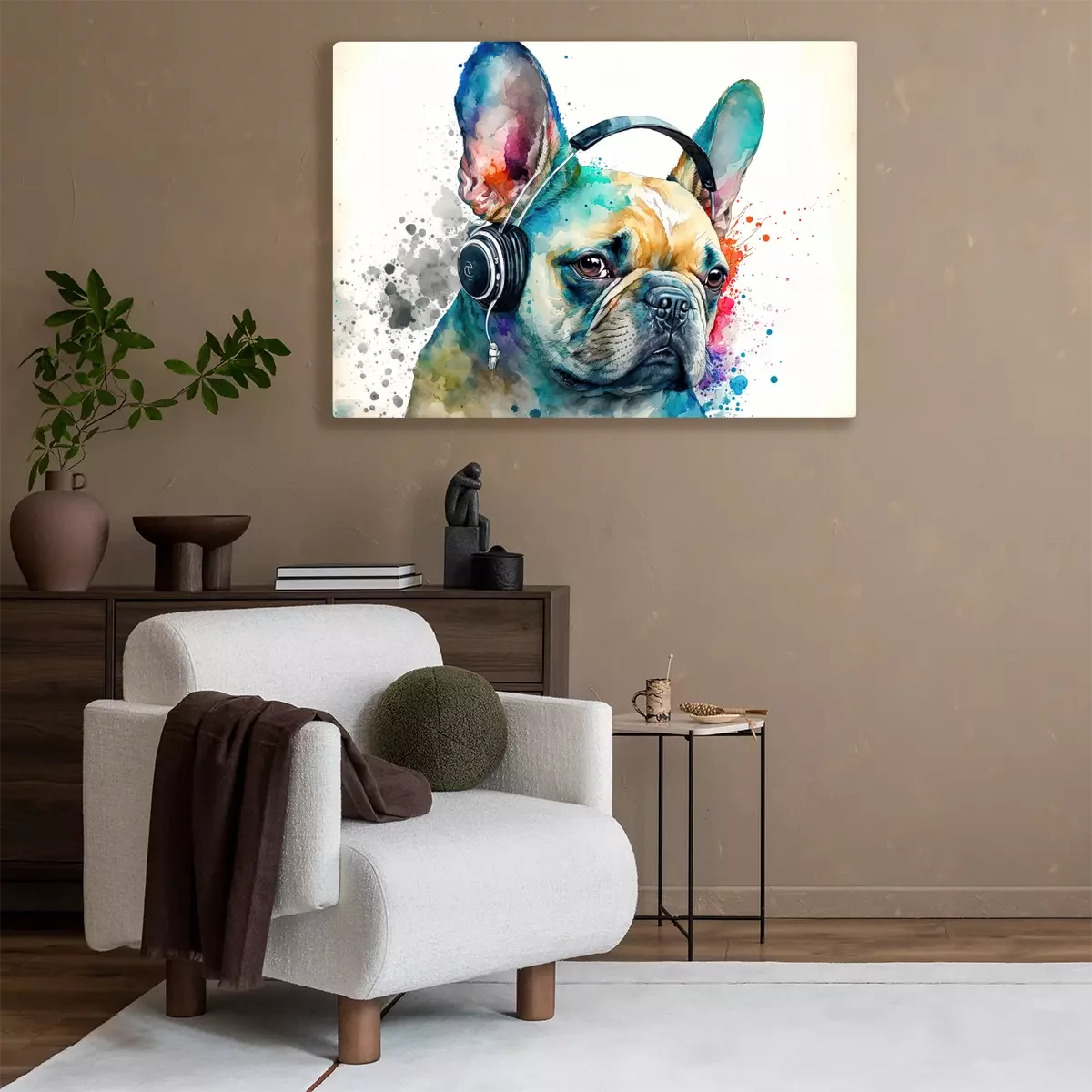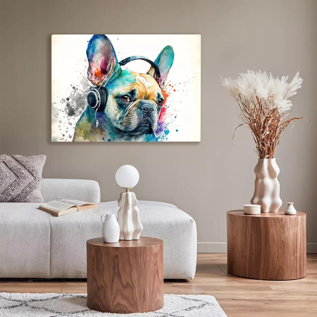 Canvas Kleurrijke Franse bulldog aquarelportret