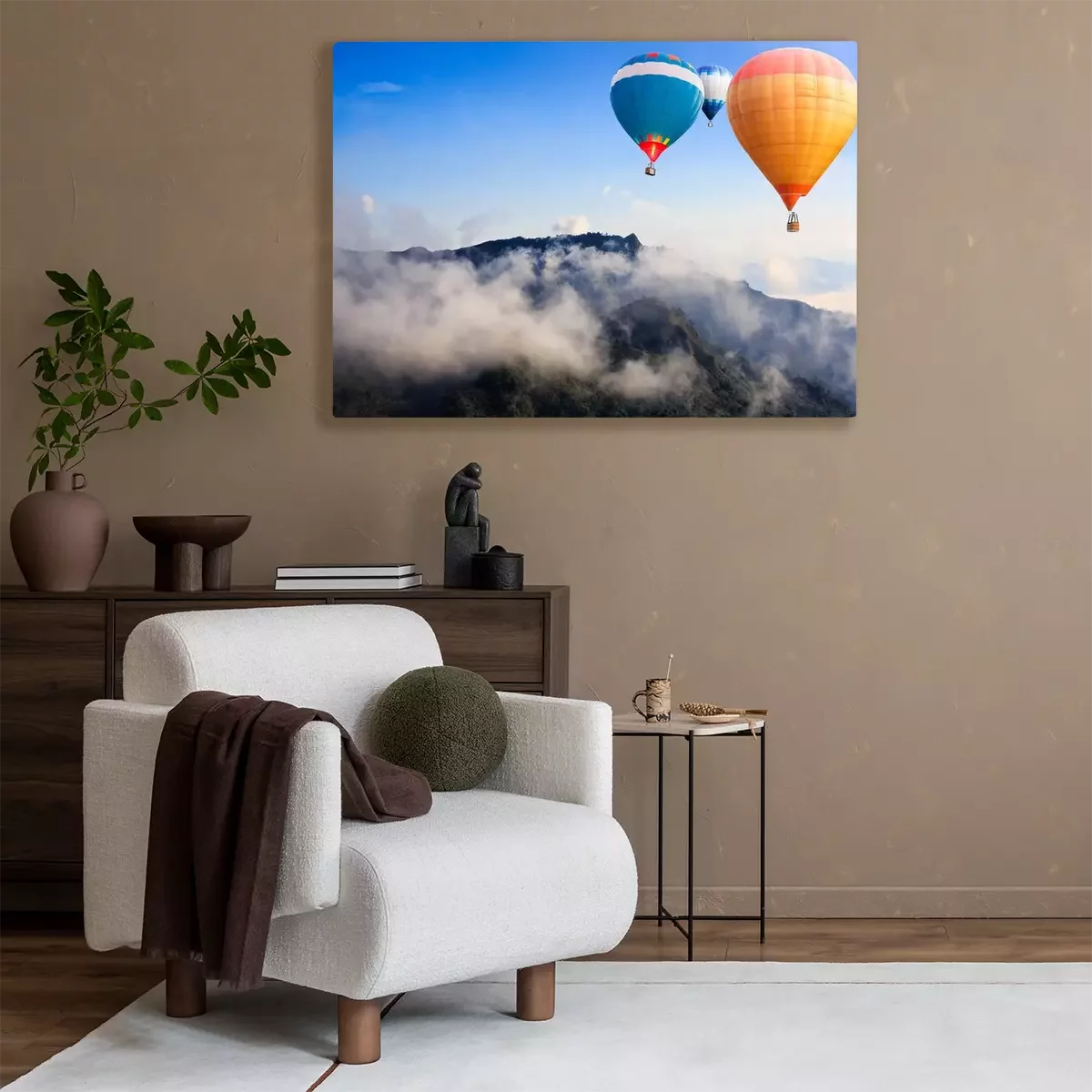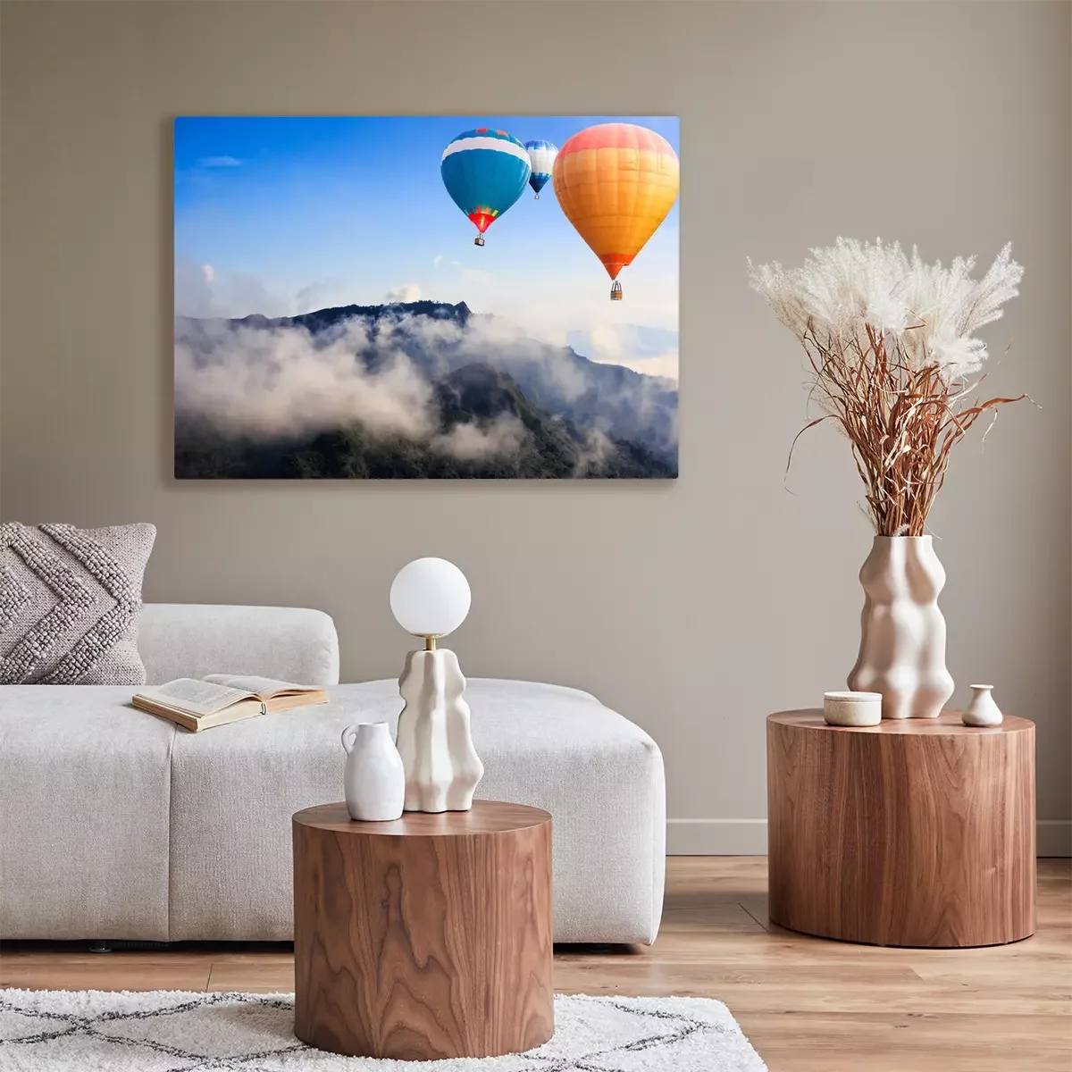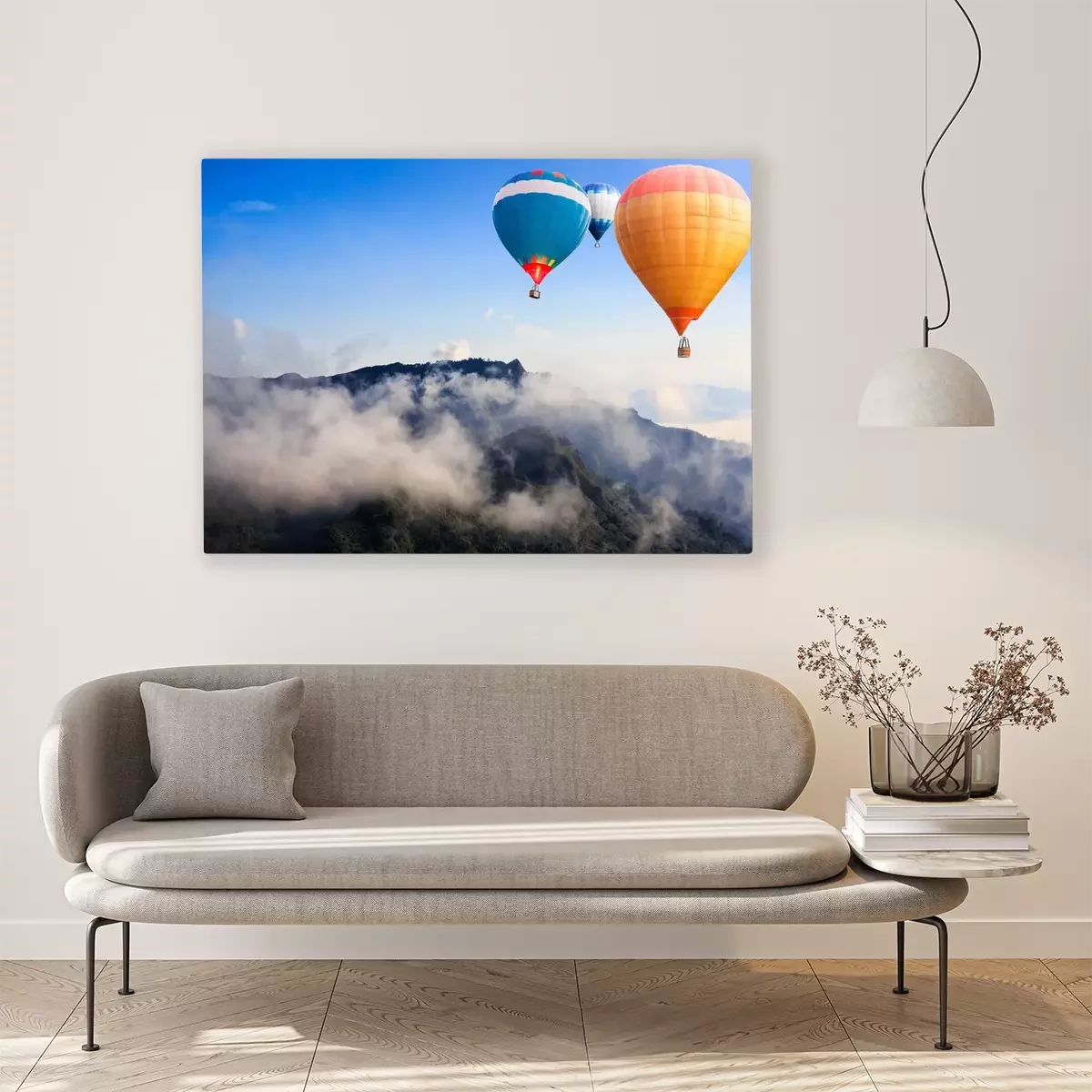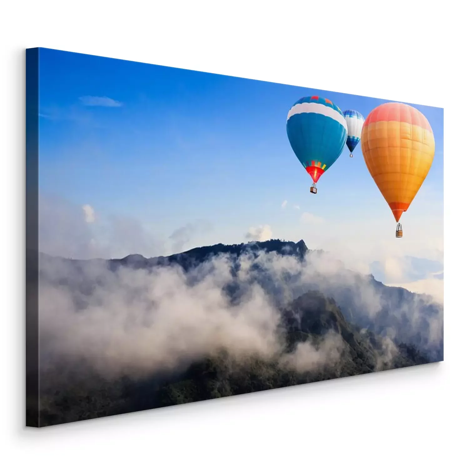 Canvas: Kleurrijke heteluchtballonnen vliegen over de berg