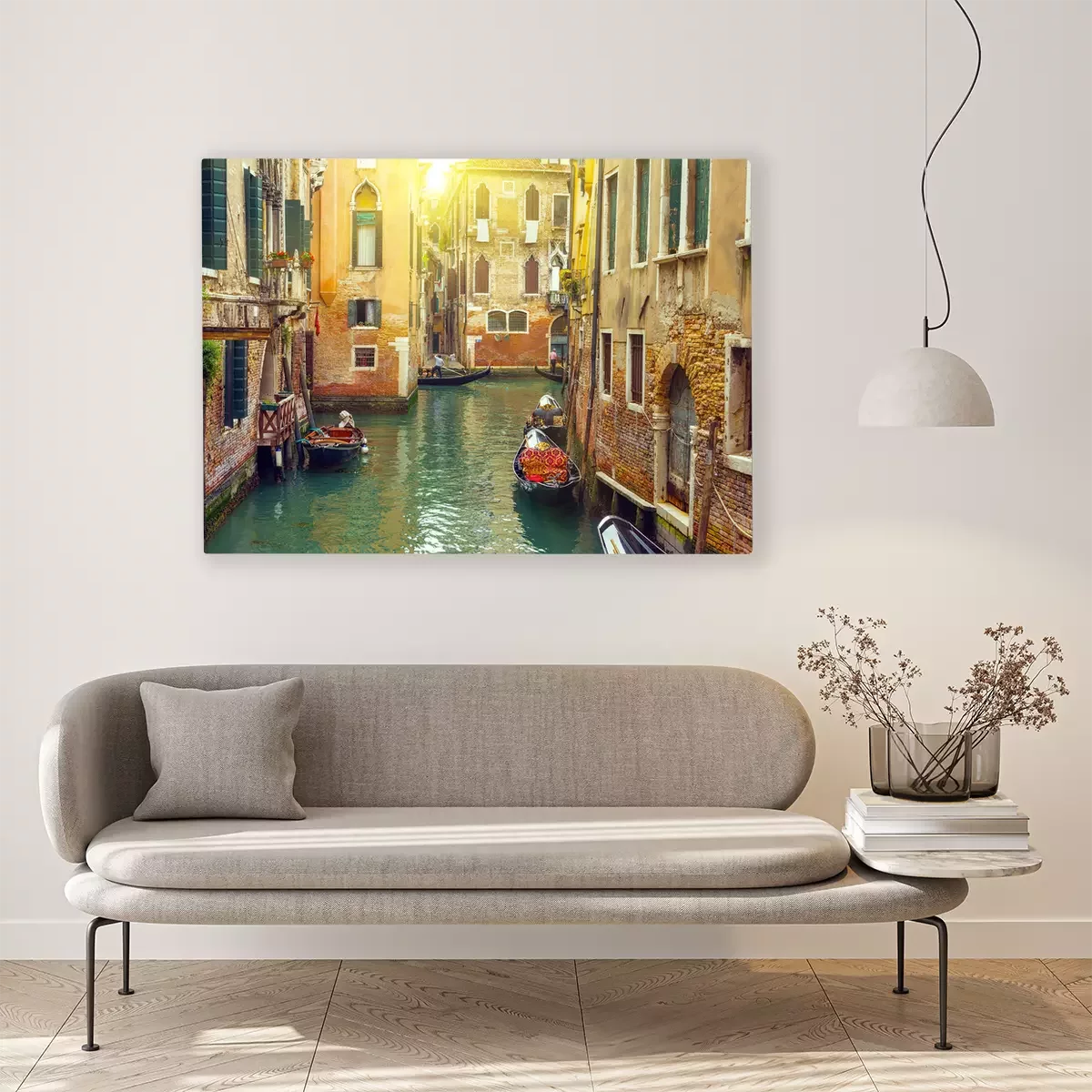 Canvas: Kleurrijke huizen en gondels in Venetië