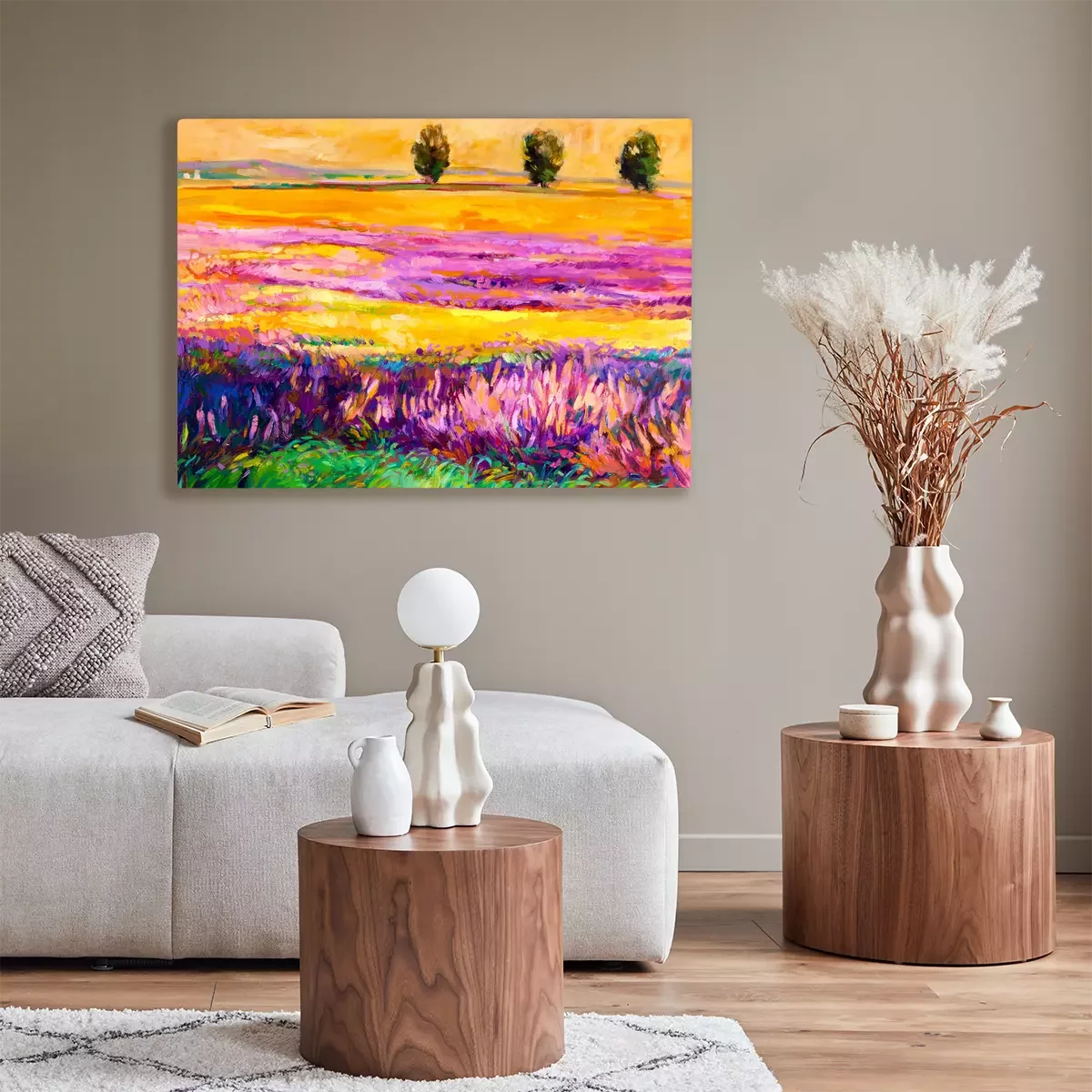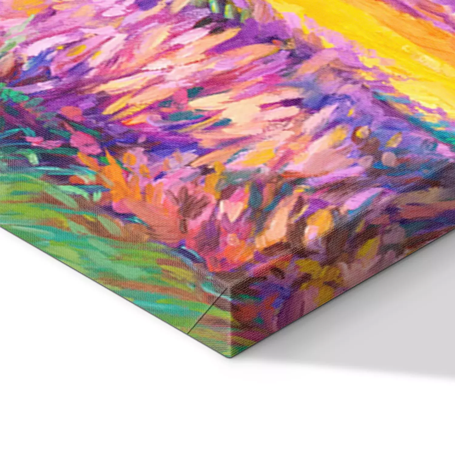 De print wordt aangebracht op hoogwaardig canvas dat op een schildersweefgetouw (spieraam) wordt gespannen. Omdat de print de zijranden bedekt, hoeft het ontwerp niet met een extra kader te worden omlijst. Wij raden ook composities aan die uit meerdere foto's bestaan en zo een coherente compositie vormen.