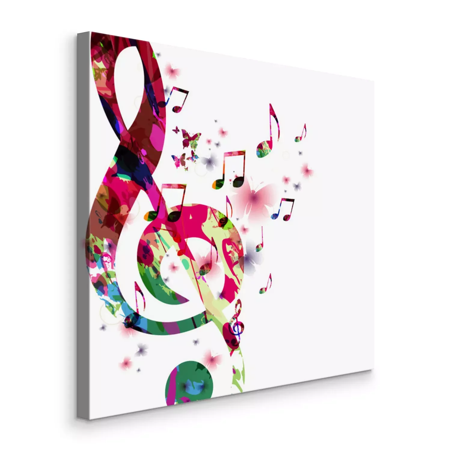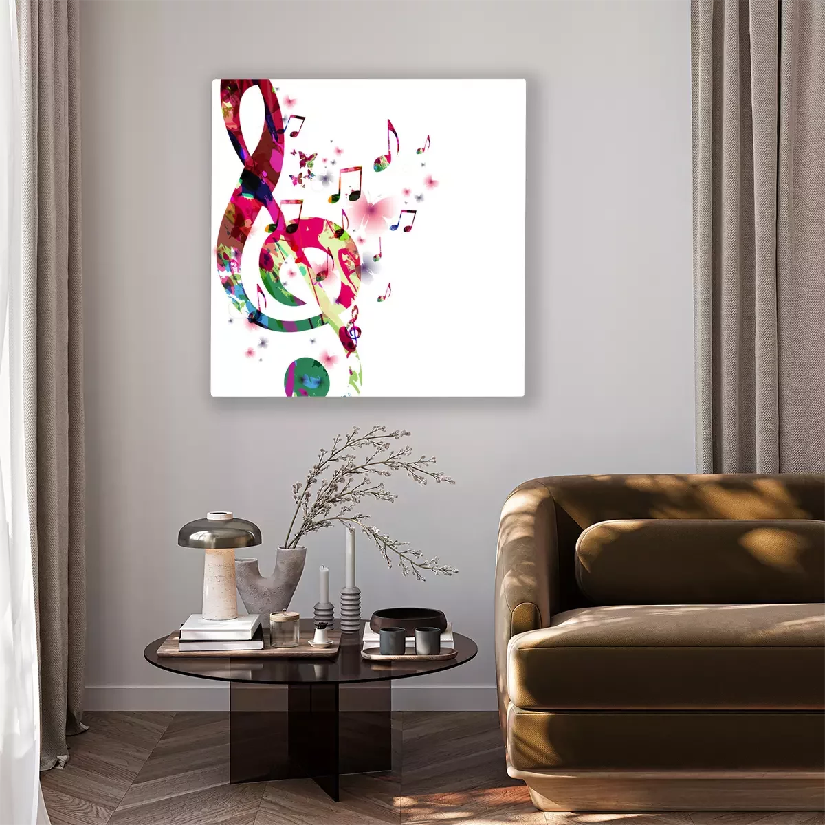 Canvas: Kleurrijke muziek noten met vlinders geïsoleerde vector illustratie. Muziek achtergrond voor poster, brochure, banner, flyer, concert, muziekfestival