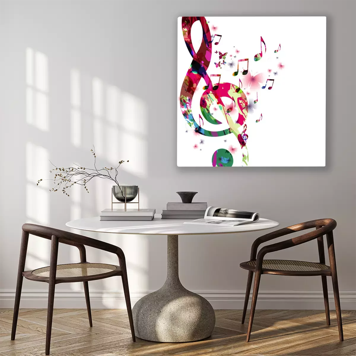 Canvas Kleurrijke muziek noten met vlinders geïsoleerde vector illustratie. Muziek achtergrond voor poster, brochure, banner, flyer, concert, muziekfestival