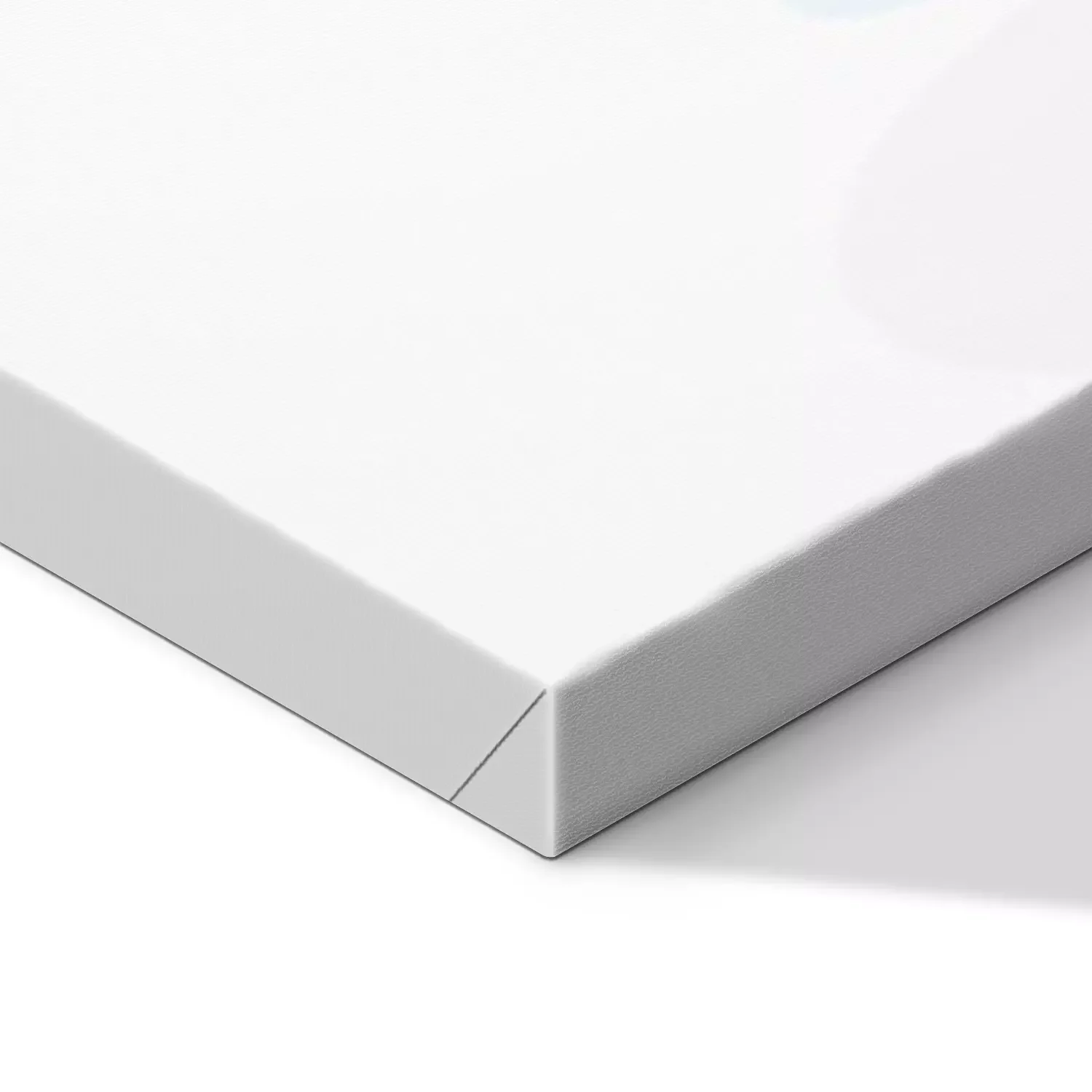 De print wordt aangebracht op hoogwaardig canvas dat op een schildersweefgetouw (spieraam) wordt gespannen. Omdat de print de zijranden bedekt, hoeft het ontwerp niet met een extra kader te worden omlijst. Wij raden ook composities aan die uit meerdere foto's bestaan en zo een coherente compositie vormen.