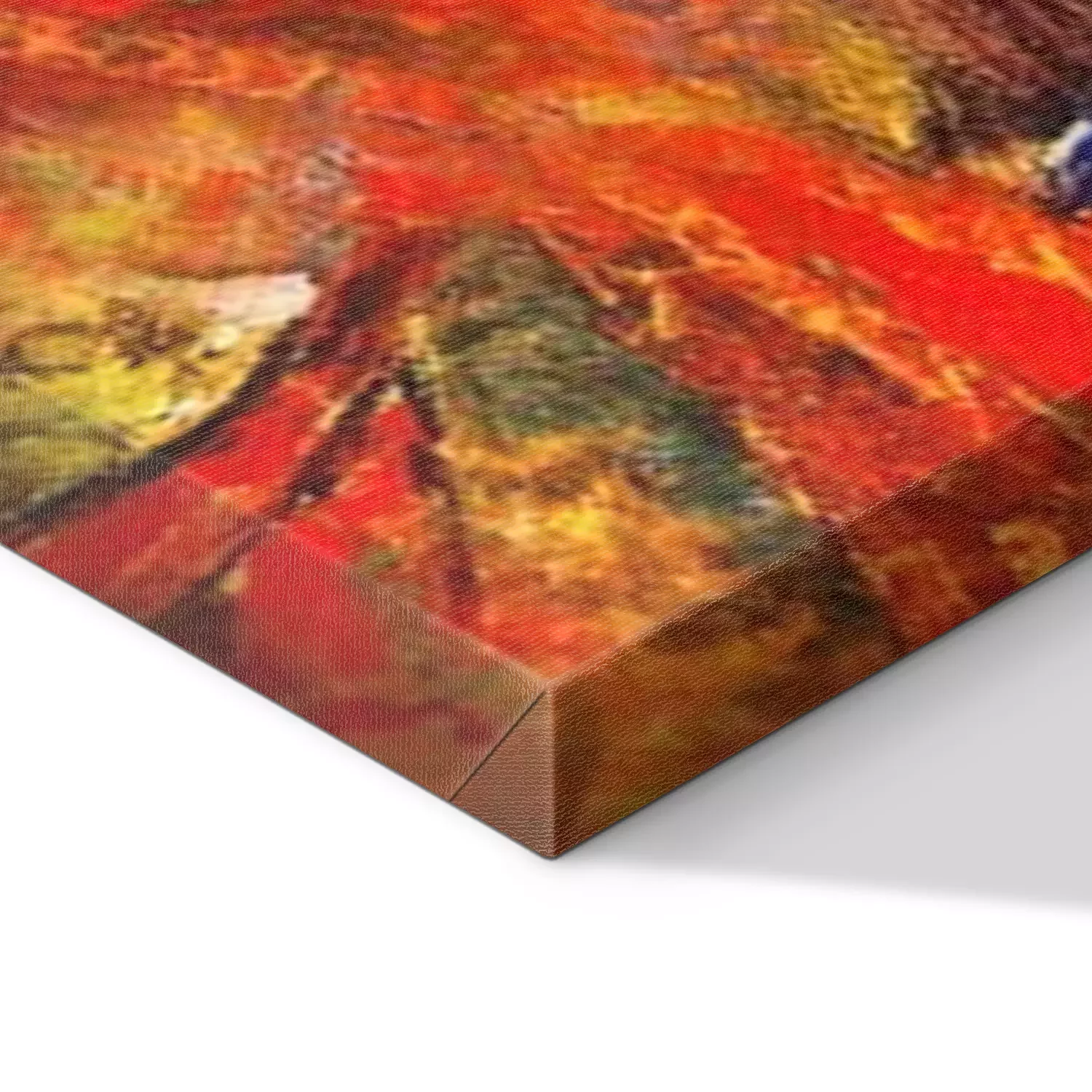 De print wordt aangebracht op hoogwaardig canvas dat op een schildersweefgetouw (spieraam) wordt gespannen. Omdat de print de zijranden bedekt, hoeft het ontwerp niet met een extra kader te worden omlijst. Wij raden ook composities aan die uit meerdere foto's bestaan en zo een coherente compositie vormen.