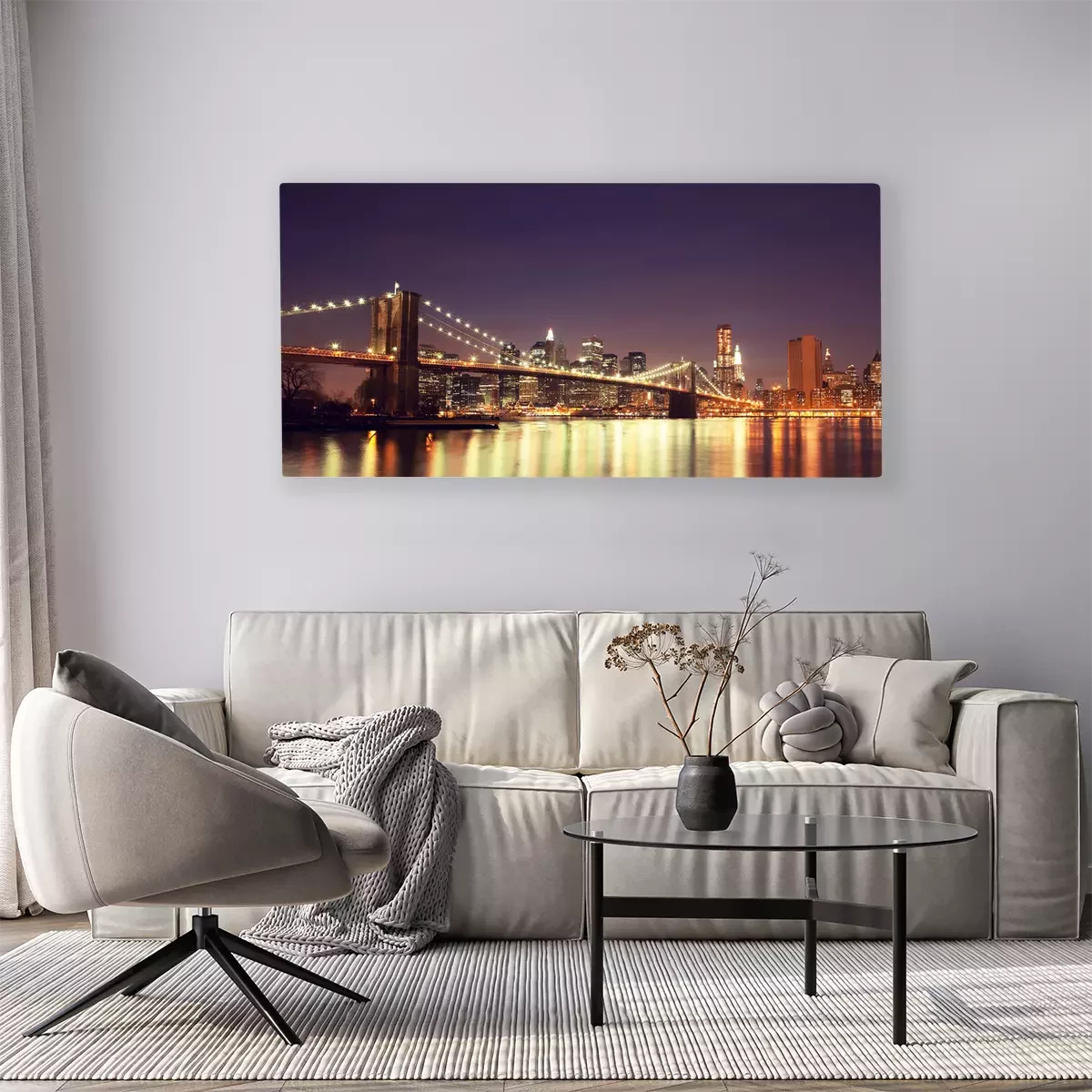 De print wordt aangebracht op hoogwaardig canvas dat op een schildersweefgetouw (spieraam) wordt gespannen. Omdat de print de zijranden bedekt, hoeft het ontwerp niet met een extra kader te worden omlijst. Wij raden ook composities aan die uit meerdere foto's bestaan en zo een coherente compositie vormen.