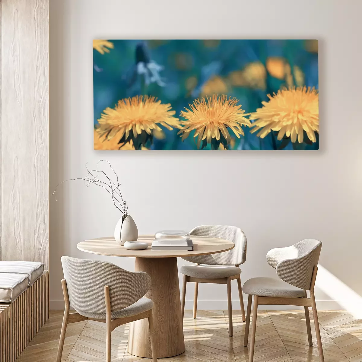 Canvas: Kleurrijke paardebloemen op een prachtige weide